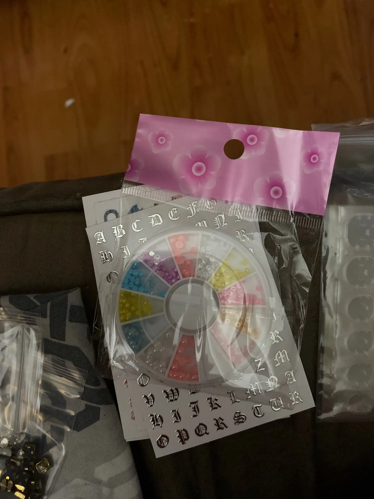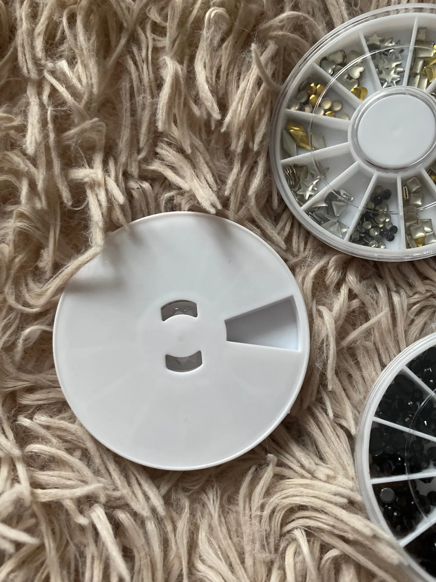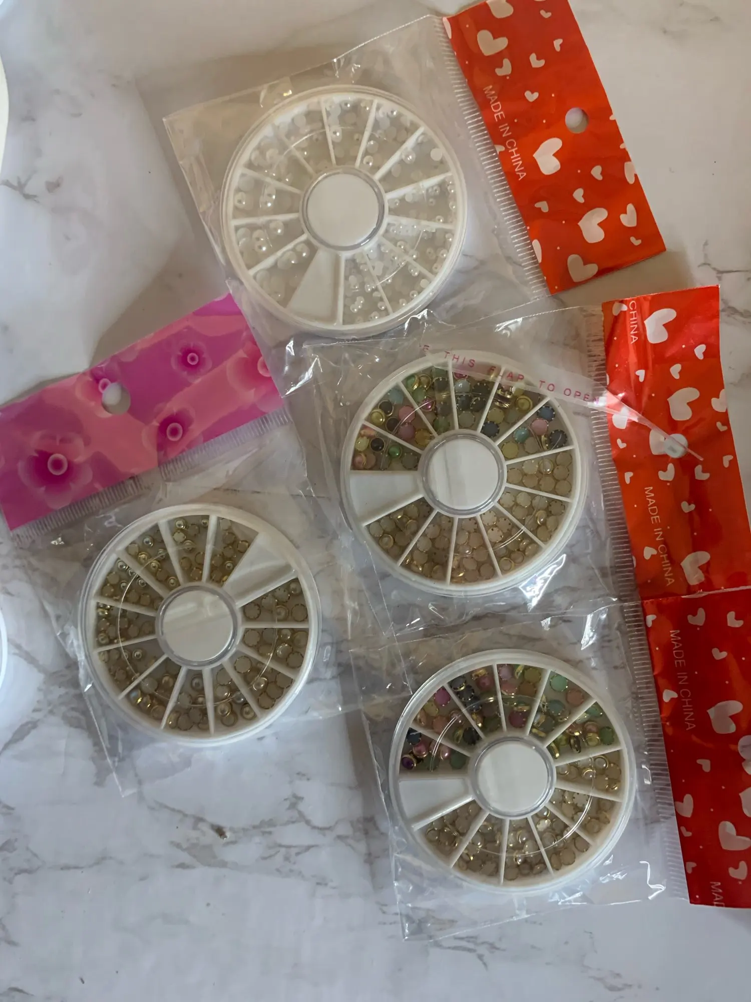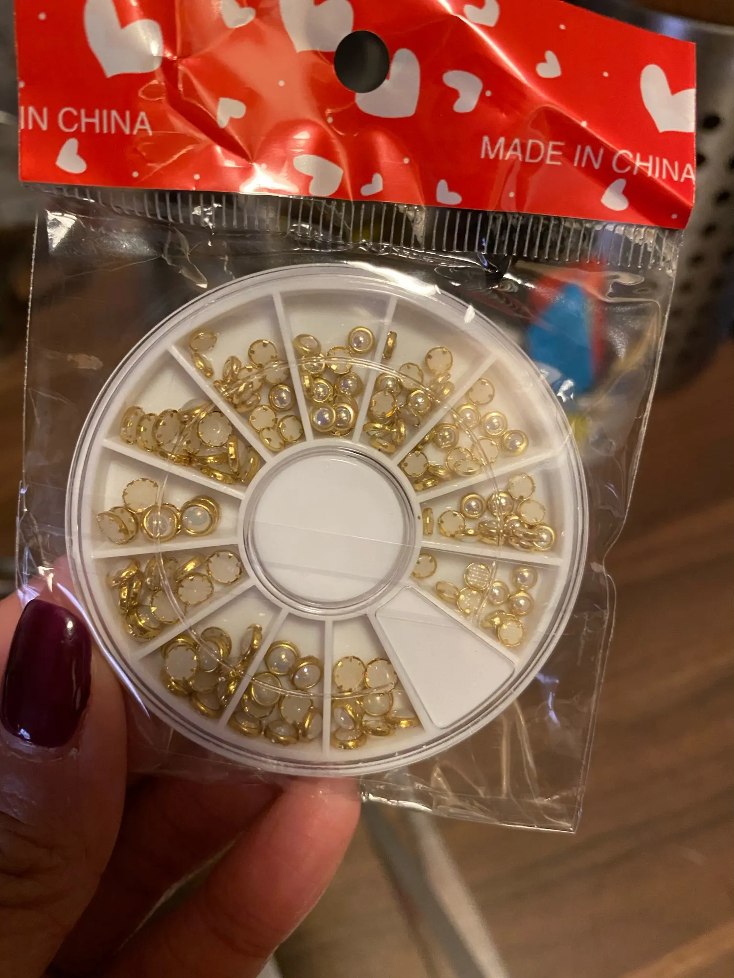 товар шёл очень долго, два с половиной месяца, но стразы очень красивые, переливаются всеми цветами радуги, разных размеров, в отсеках их достаточно, стеклянные, на фото на ладони два размера, самый большой и самый маленький, есть ещё два вида средних, рекомендую, смотрятся дорого