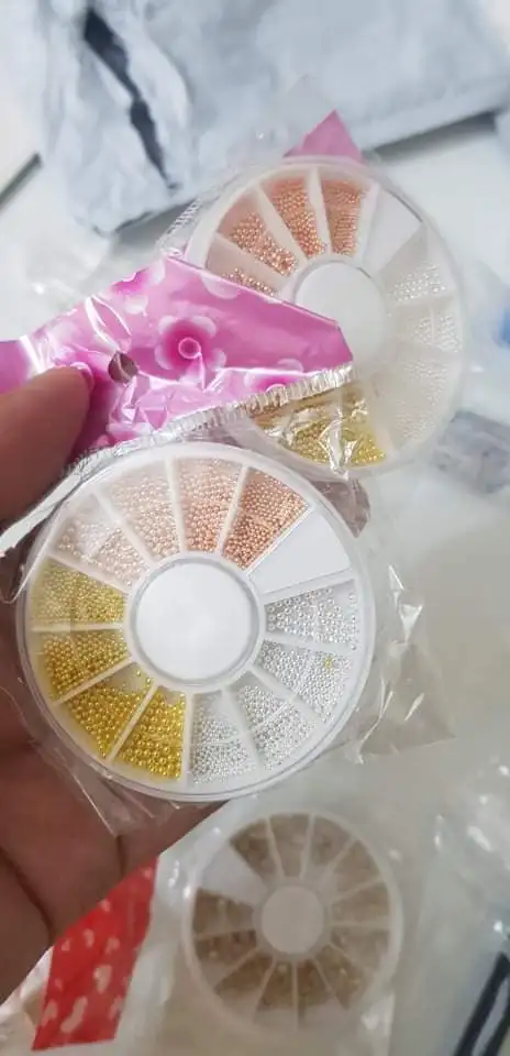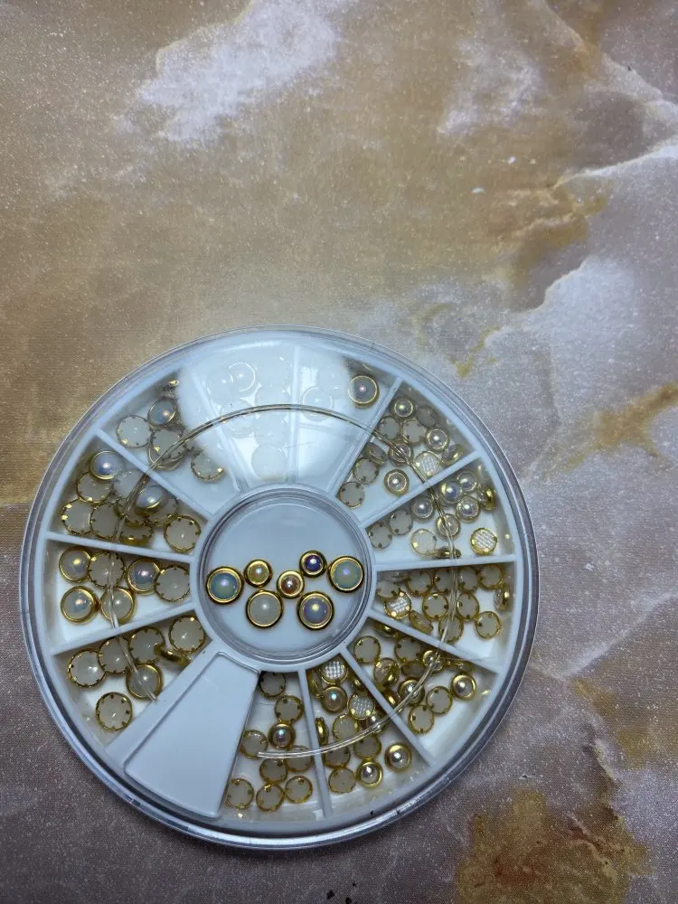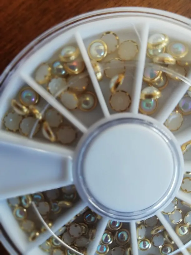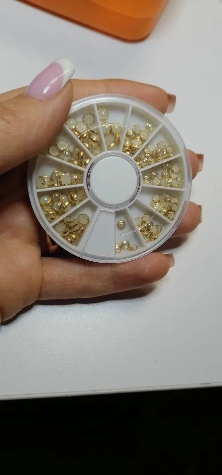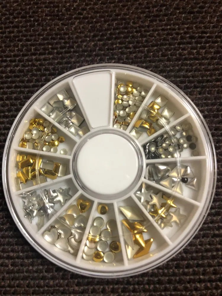 1 коробка AB бежевые металлические края блеск гвоздики, бусины для ногтей Красота Шарм Нейл-арт в домашних условиях жемчуг украшения колеса