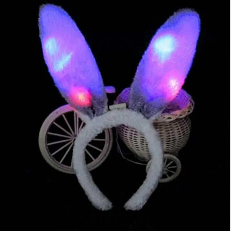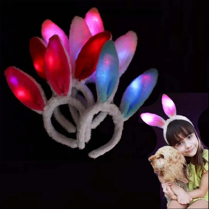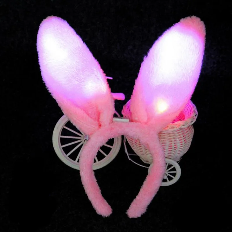 Блестящий плюшевый кролик, светящийся милый ободок со светодиодной ...