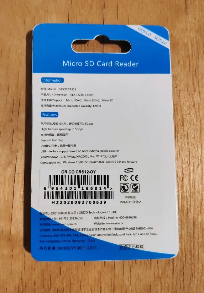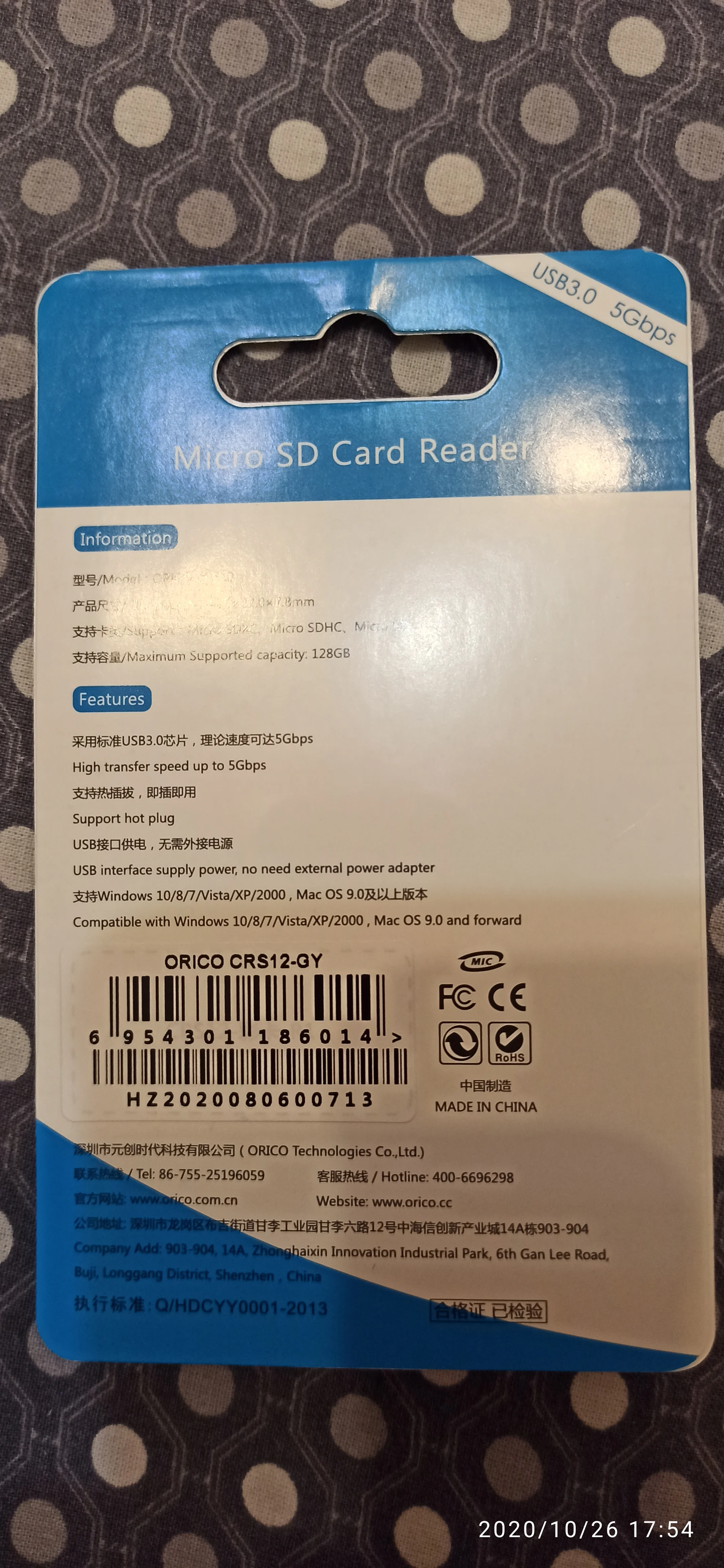 Это был мой первый раз, когда я купил что-то у этого бренда, это очень быстрый считыватель sdhc, и он делает то, что говорит продавец, посылка была отправлена быстро и быстро, Я очень доволен продуктом, и я буду покупать больше продуктов у orico в этом году