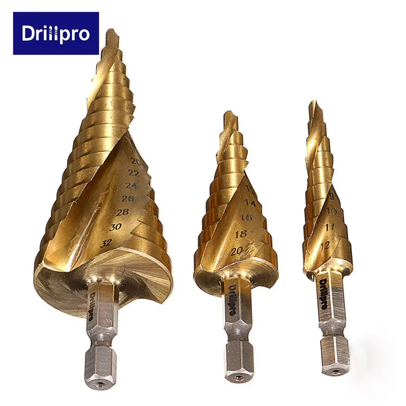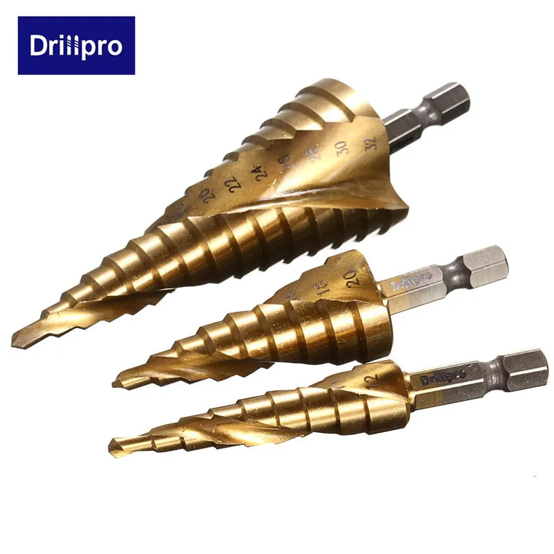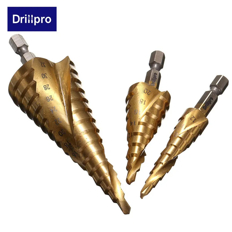 Сверла спиральные ступенчатые из быстрорежущей стали, 4-122032 мм, 3 шт.