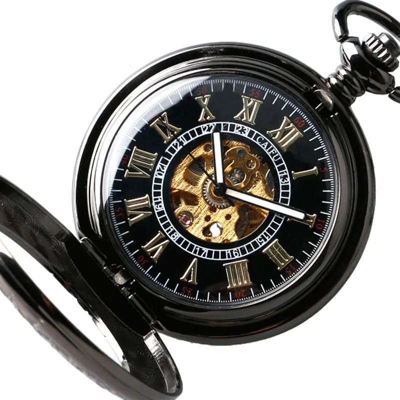 Роскошные Механические карманные часы мужские резьба прозрачная стеклянная крышка Заводной моды автоматические стимпанк изысканный брелок часы подарок
