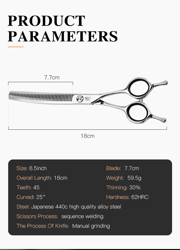 Высококачественные ножницы для волос Fenice JP440c, 6,5 дюйма, изогнутые тоньше, ножницы для парикмахерской, ножницы для укладки салона красоты
