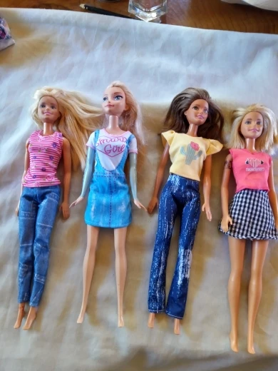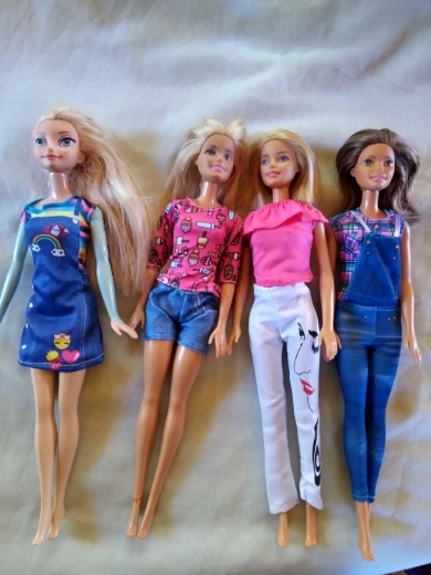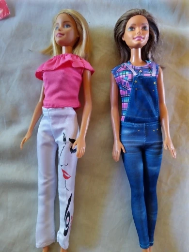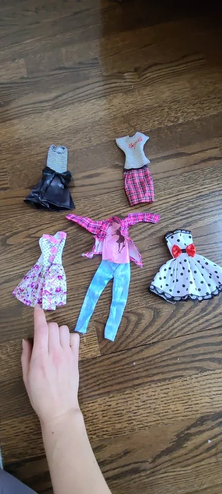 В целом неплохой лот одежды, но есть нюансы. Например комбинезон из тонкого трикотажа и пришел весь в закупках от застежки-липучки. Одни брючки совсем не тянутся и очень узкие, посадить в них шарнирную Барби невозможно. В остальном хорошие вещички.