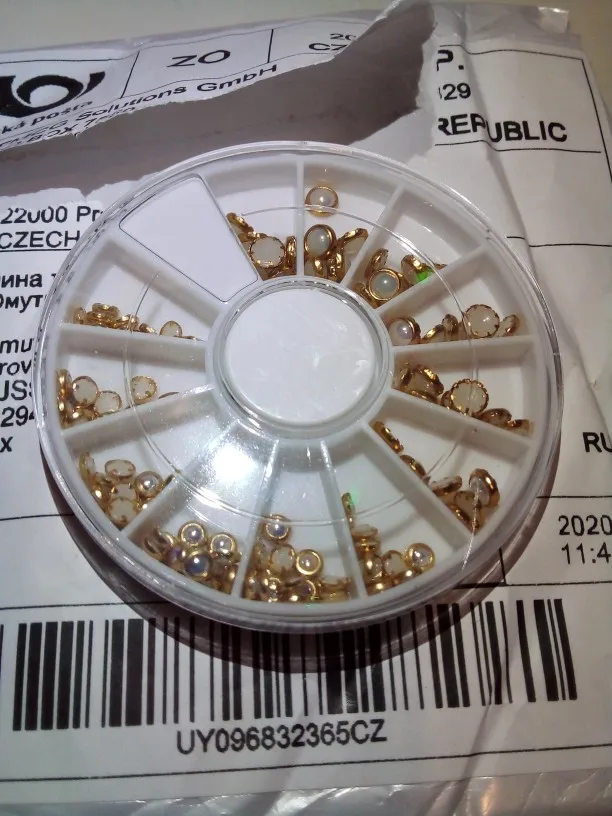 Коробочка не очень удобная, самые мелкие стразы сыпятся сквозь неё. Шло очень долго, несколько раз продавец продлевал защиту