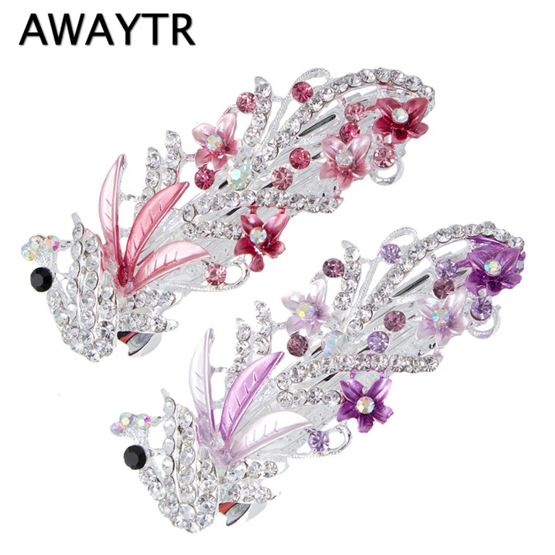 Заколки для волос женские, с павлином и цветами, 5 цветов