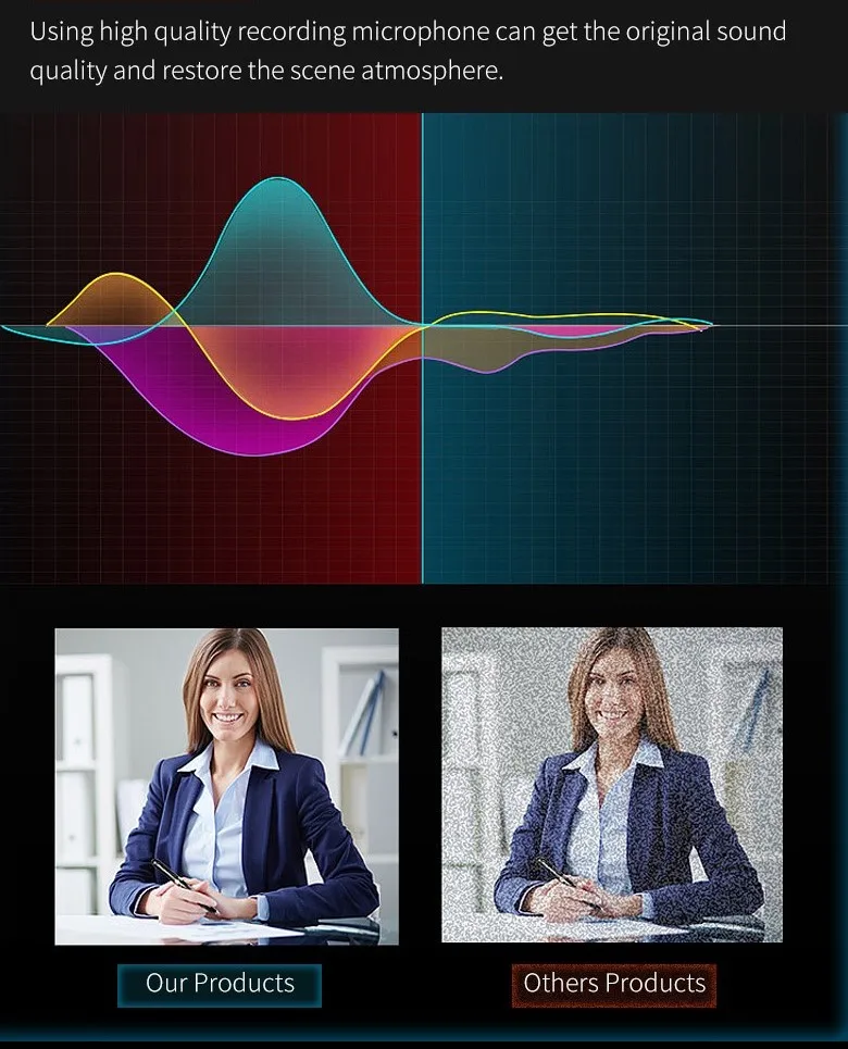 Компактный диктофон с двумя встроенными микрофонами и возможностью подключения микрофона петлички.Звук пишет хорошо, для более качественного звука рекомендую докупить более качественный вариант микрофона петлички.