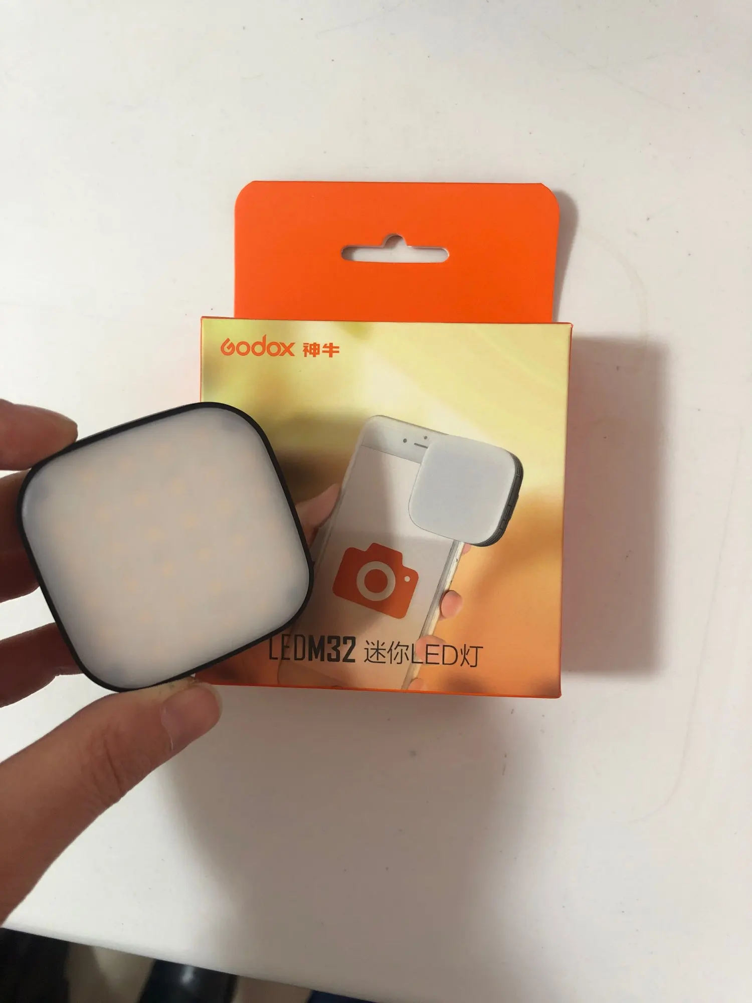 Godox Мини портативный флэш-светодиодный M32 камера светодиодный светильникLEDM32 мини-светильник отлично подходит для все виды из мобильные телефоны с светильник вес и простота в эксплуатацииВысококачественные светодиодные лампыВстроенный литиевый аккумулятор, светильник более 45 минут от аккумулятораИз-за мягкого и равномерное освещениеРегулируемый свет яркостиС функцией вспышки с оптическим управлением Технические характеристики:Светодиодный светильник: светодиодный M32Встроенная литиевая батарея: 3,7 v 300mA литиевая батареяМощность: Max.1.4wЦветовая температура: 5200k +/-300KЯркость (Lux):>120 (0,5 м)Индекс цветопередачи:>= 95TLCI> = 94Светильник brigtness rangs:10%-100%Количество светодиодных бусин: 32Рабочая температура:-10 - 50CРазмер: 50 мм x 50 мм x 28 ммВес нетто: 30 г Посылка включает в себя:Мини светодиодный светильник светодиодный M32 x1