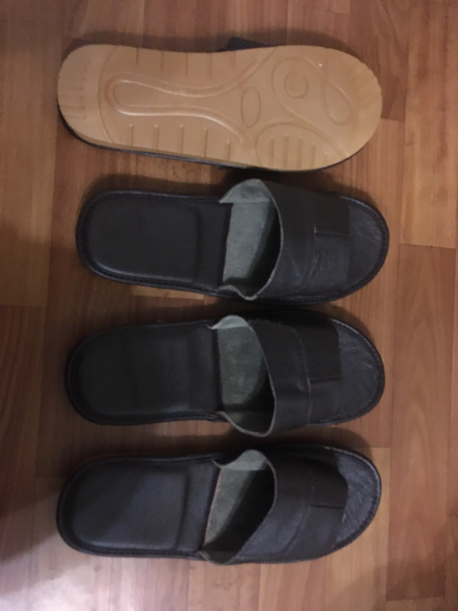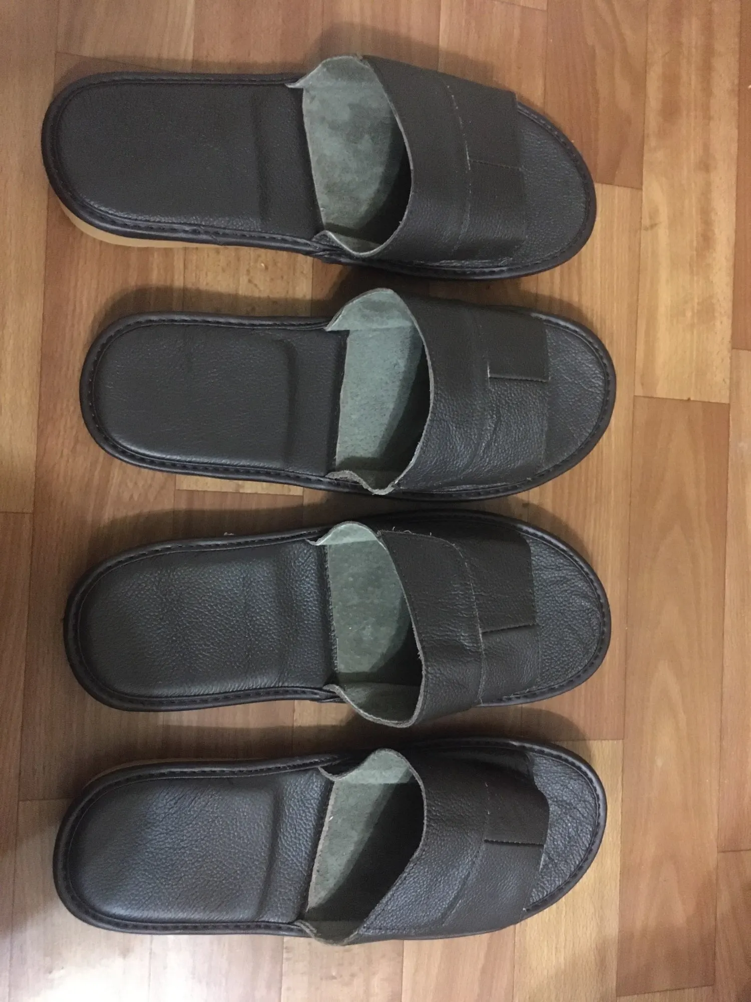 Уже второй раз заказываю такие тапочки у этого продавца. Сейчас заказал чёрного цвета. В прошлый раз коричневые. Полностью соответствуют описанию. Хорошо выглядят. В этот раз две клея нет лишнего. Всё супер. Кстати прикладываю фото спустя несколько месяцев использования коричневые тапочки, они в идеальном состоянии. Спасибо продавцу!