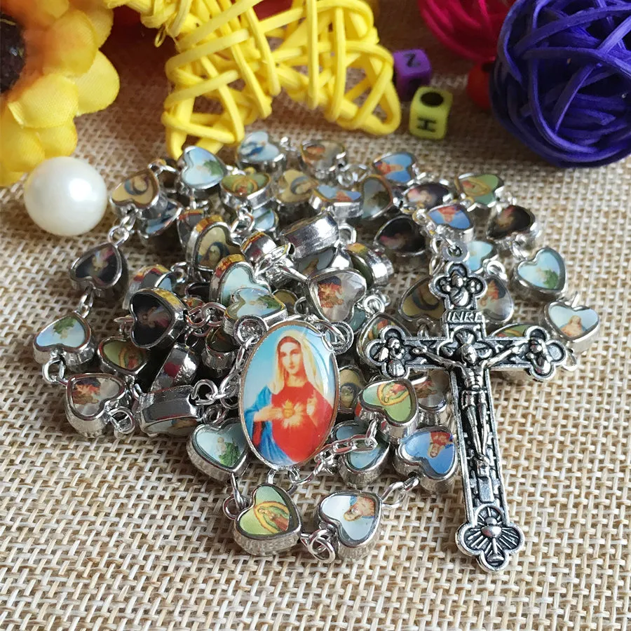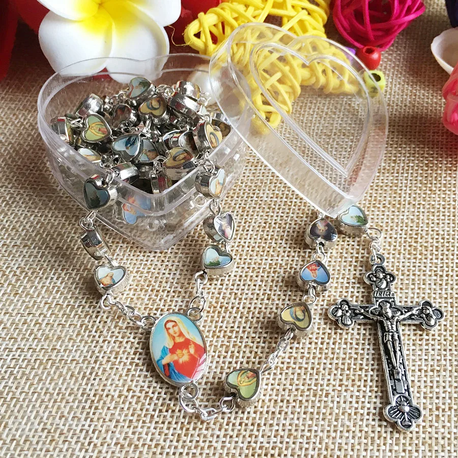 1. Название: Бесплатная доставка; Смешанные католические фигурки; Розария из сплава с бусинами в форме сердца; Четки с иконой Св. Валентина Марии; Крест Иисуса