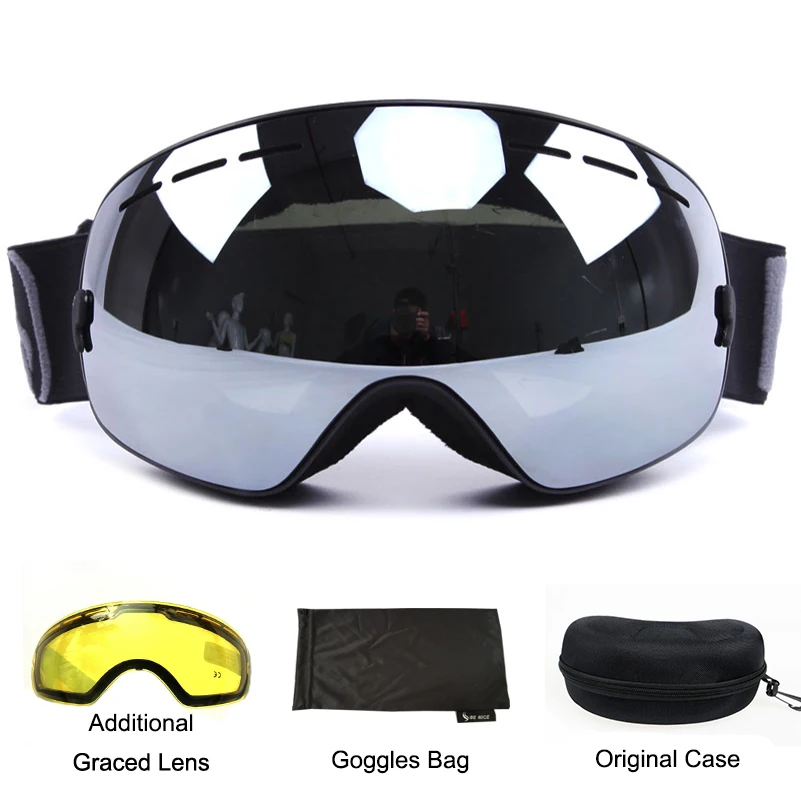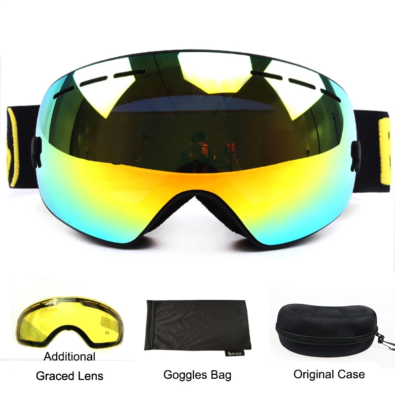 Лыжные очки Benice, двухслойные сферические лыжные зеркальные очки UV400 с защитой от запотевания, для катания на лыжах, для мужчин и женщин, очки для снега, набор из 3100 и чехол для объектива