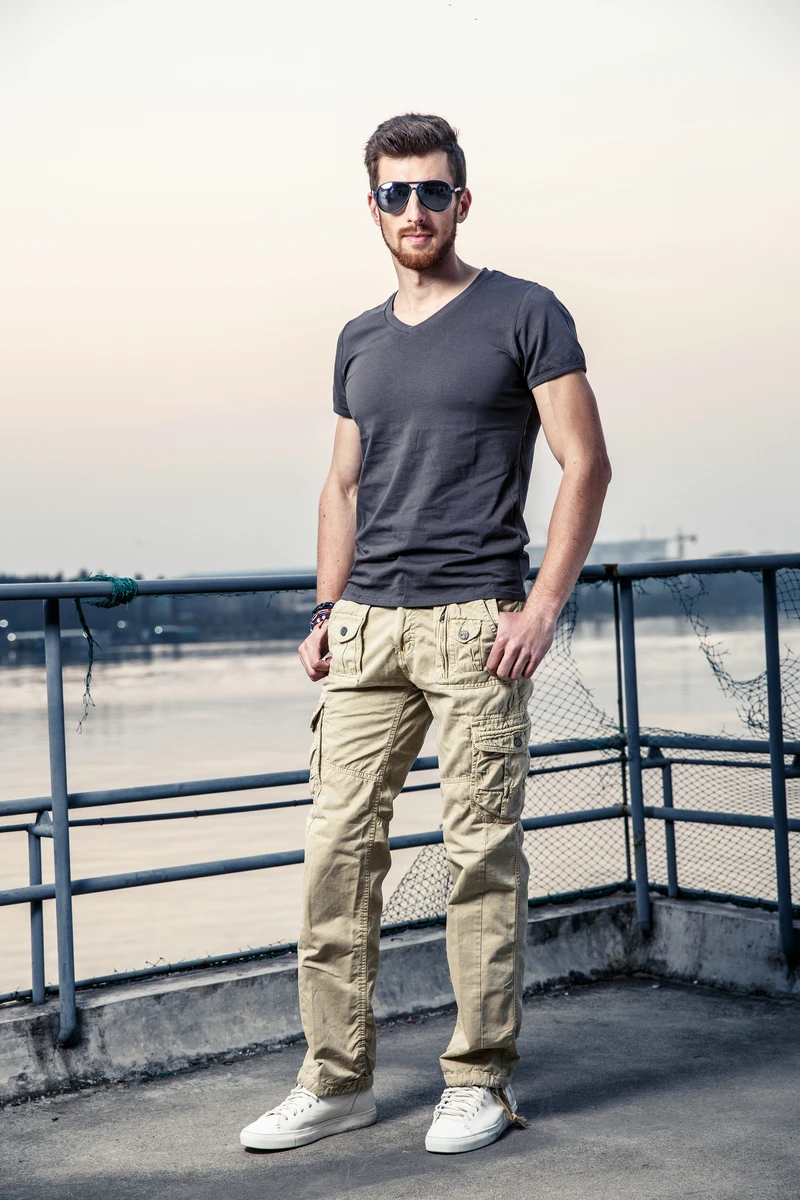 Брюки-карго мужские, однотонные, с несколькими карманами, 29-40, JPCK11