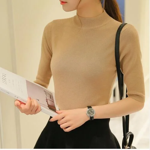 Облегающий свитер-водолазка, полутонкий, весна-осень