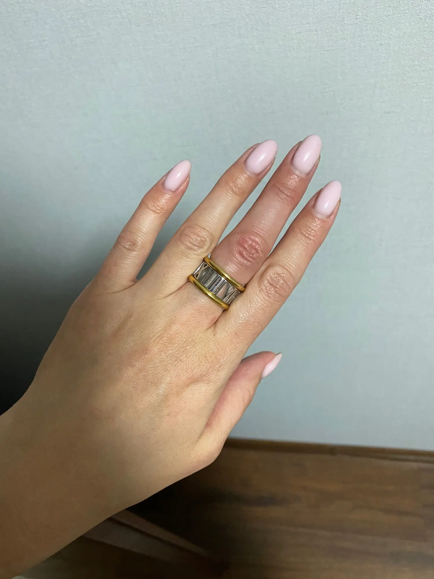 Это очень хорошее кольцо, но с этим я покупаю его второй раз. В первый раз золотые кольца были отделены от серебряной части центра, а во втором заказе один уже ослаблен в сумке. Очень плохой опыт.
