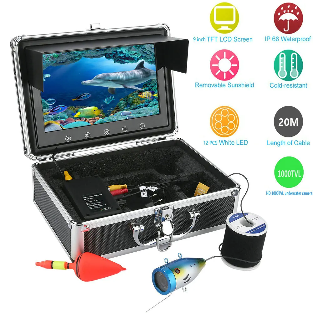 9 "дюймовый цветной монитор 20 м 1000tvl подводная рыбалка видео камера комплект 12 шт. светодиодный ные фонари