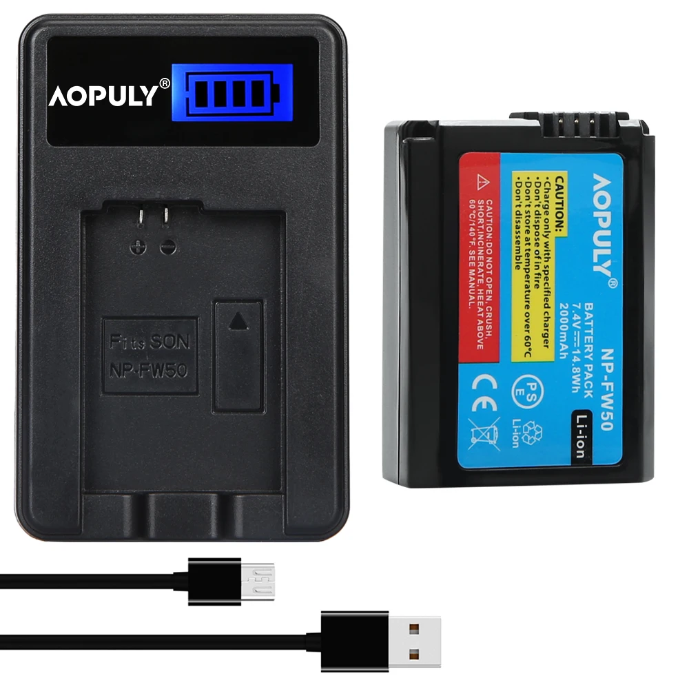 AOPULY, 2 шт., 2000 мАч, телефон с аккумулятором NPFW50 NP FW50 + зарядное устройство USB с ЖК-дисплеем для Sony