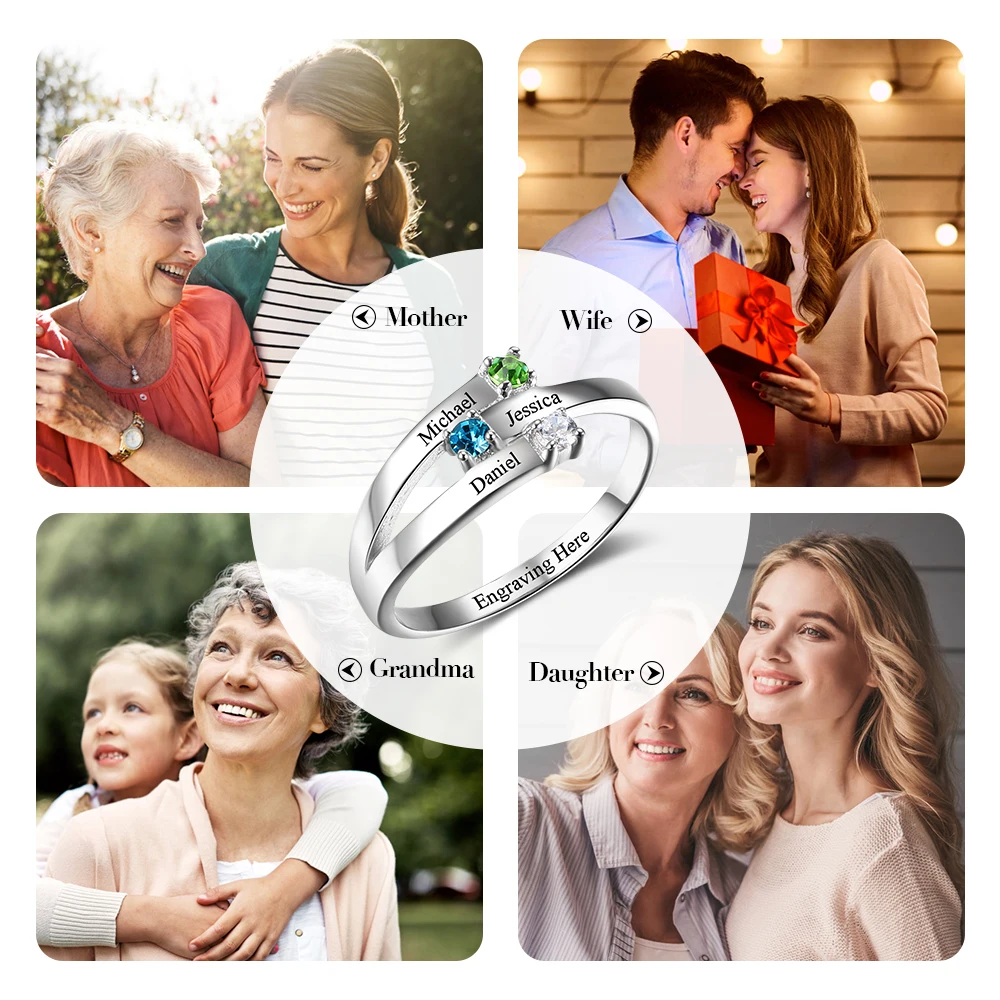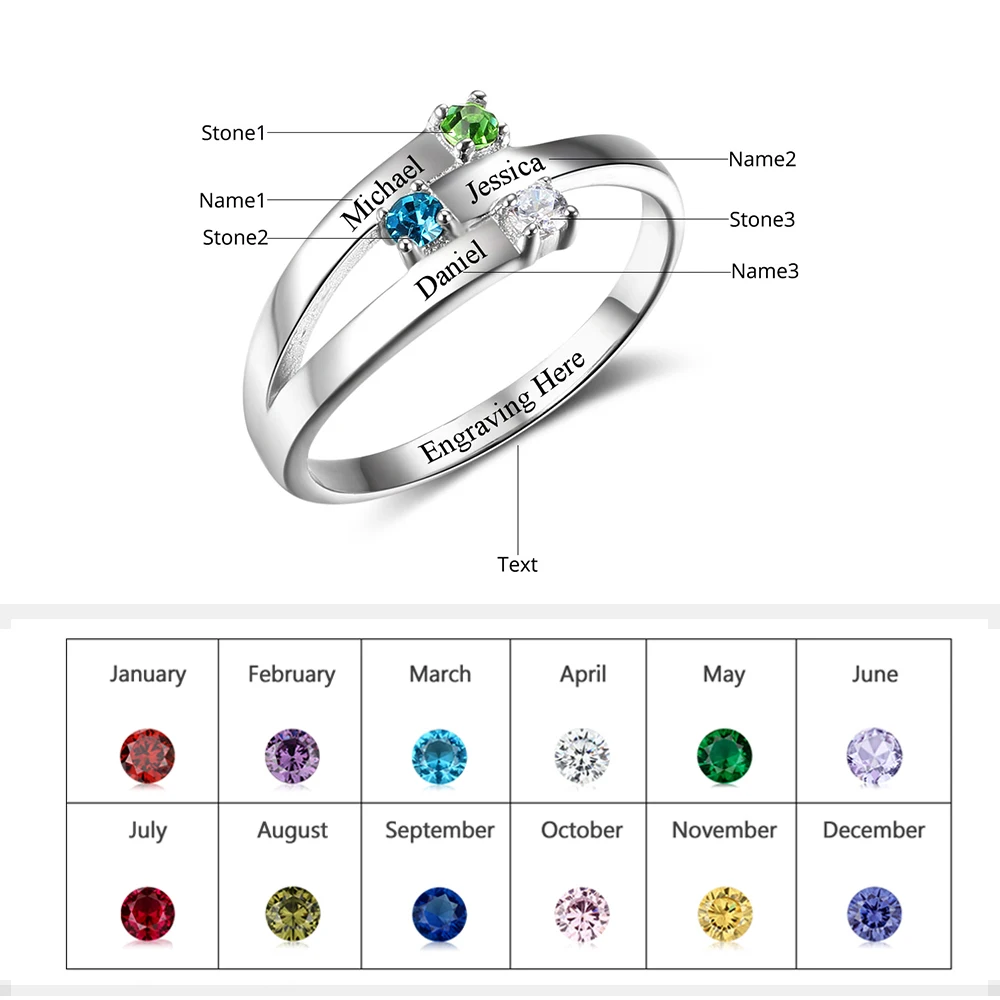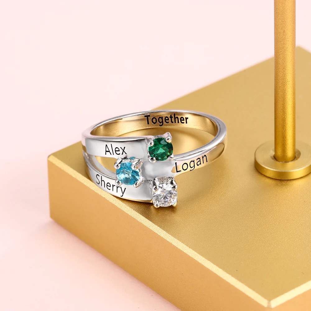 Кольца с гравировкой имени матери, персонализированные кольца с гравировкой для женщин, 3 камня на заказ, ювелирные изделия для матери (RI102505)