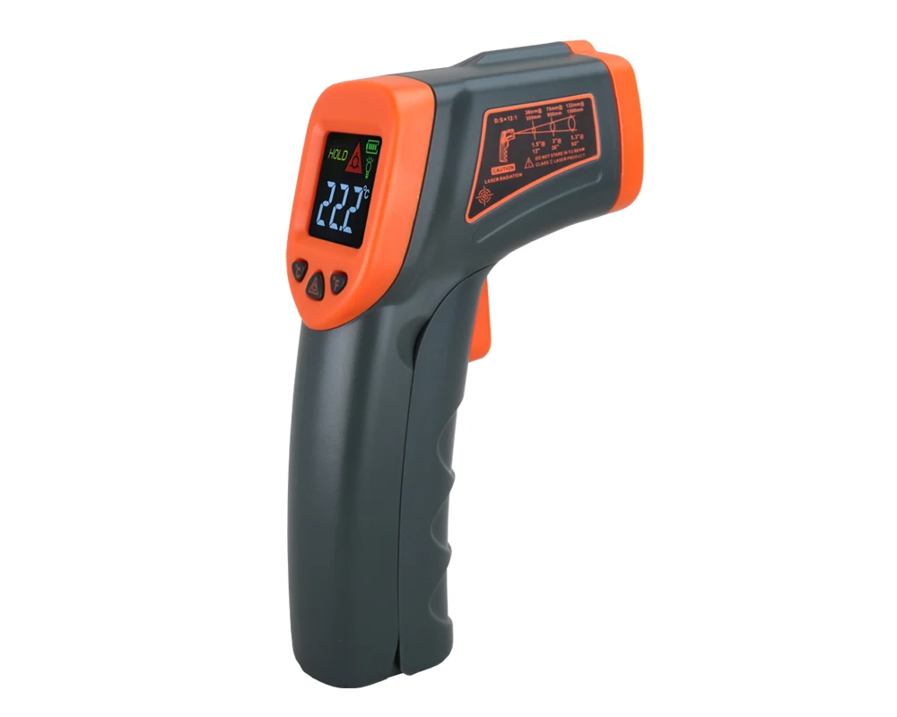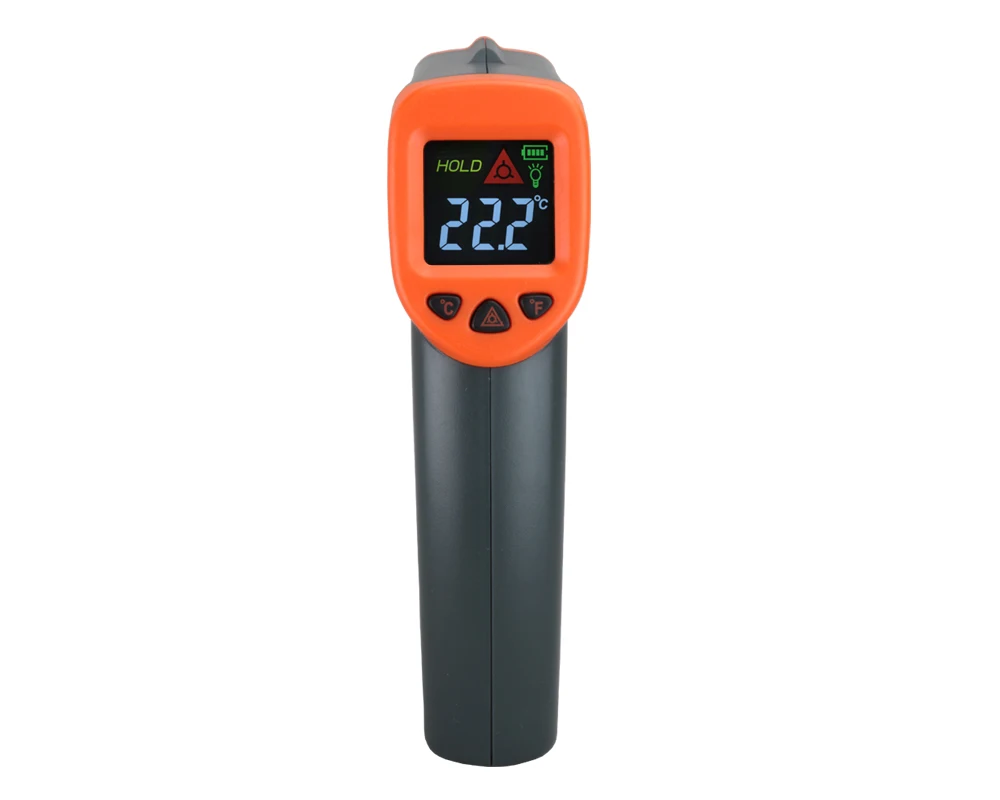 Компактный, прочный и простой в использовании. Просто направьте кнопку, чтобы узнать текущую температуру поверхности меньше, чем за секунду. Безопасно измеряйте температуру поверхности горячих, опасных или труднодоступных объектов без контакта.