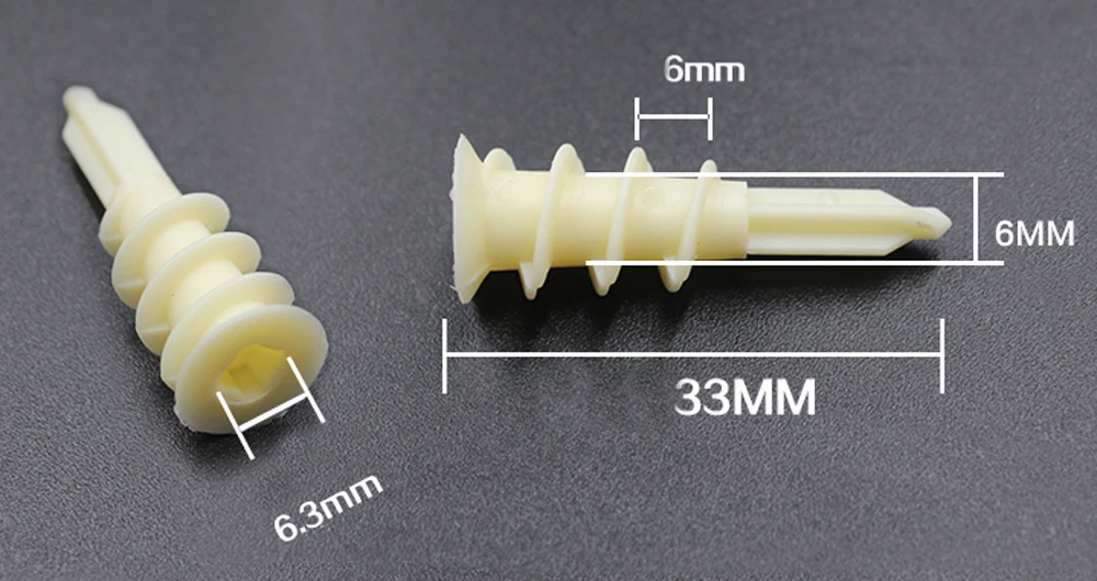 Гипсокартонный якорь 100 шт. 6x33 мм гипсокартонный нейлоновый ребристый якорь самосверливающийся настенный гипсокартонный пластиковый нейлоновый якорь светло-желтый