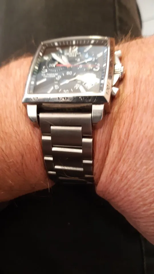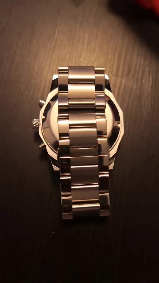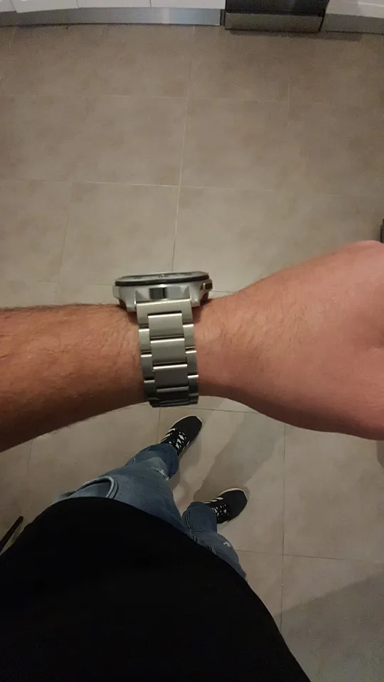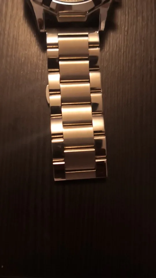 отличный ремешок, тяжелый, литой конструкции, брутальный, выглядит надежно, очень понравился. Немного отличается оттенок металла от часов, при детальном сравнении цвет металла с желтизной, но это матовый, как выглядит глянец, не знаю. Такой же ремешок в интернет магазине нашел за 2200 + доставка, здесь отдал 701 руб.