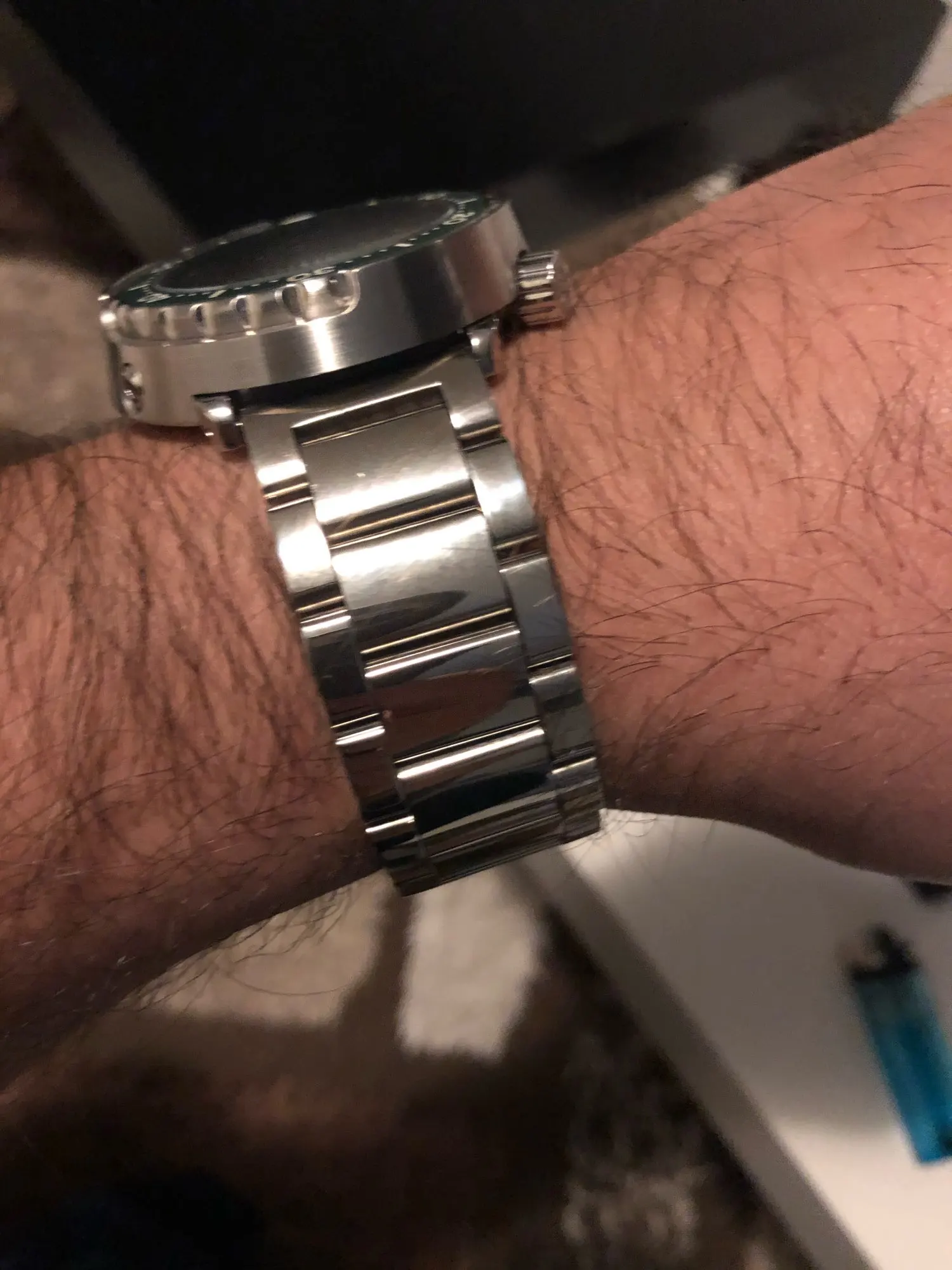 Good quality bracelet for the price. The brushing is stunning! There are no q screws but a pushing system needles, not a very good quality but it's quicker to change the length. Sits perfectly on my 18.5cm wrist ( 6,7 inch)