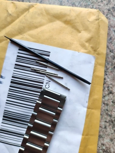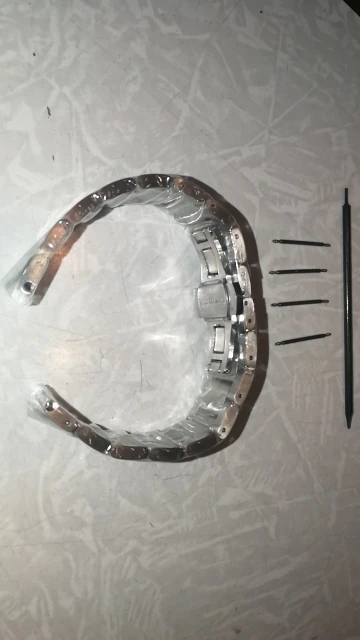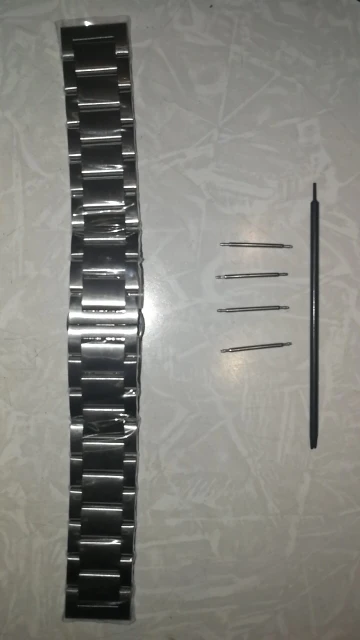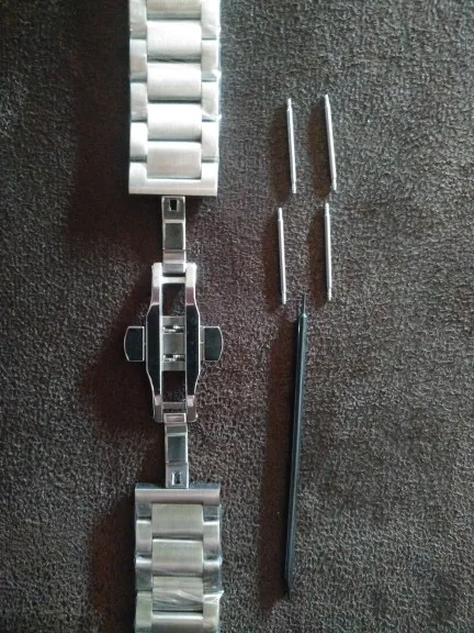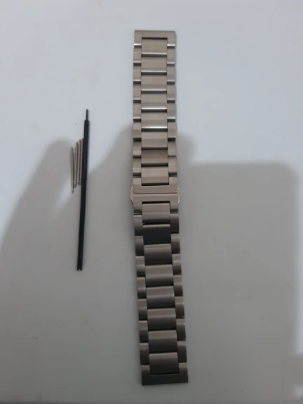 хороший браслет, только шпильки в комплекте какие-то тоненькие, а родные от часов не вошли(. понравилось что металл не пахнет жестянкой, а то как то раз покупал, не здесь, а от него пахло как из под банки кофе.