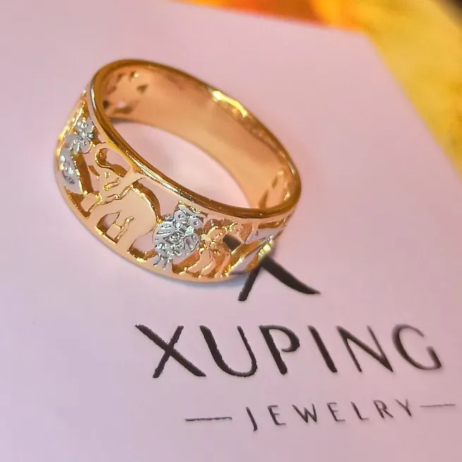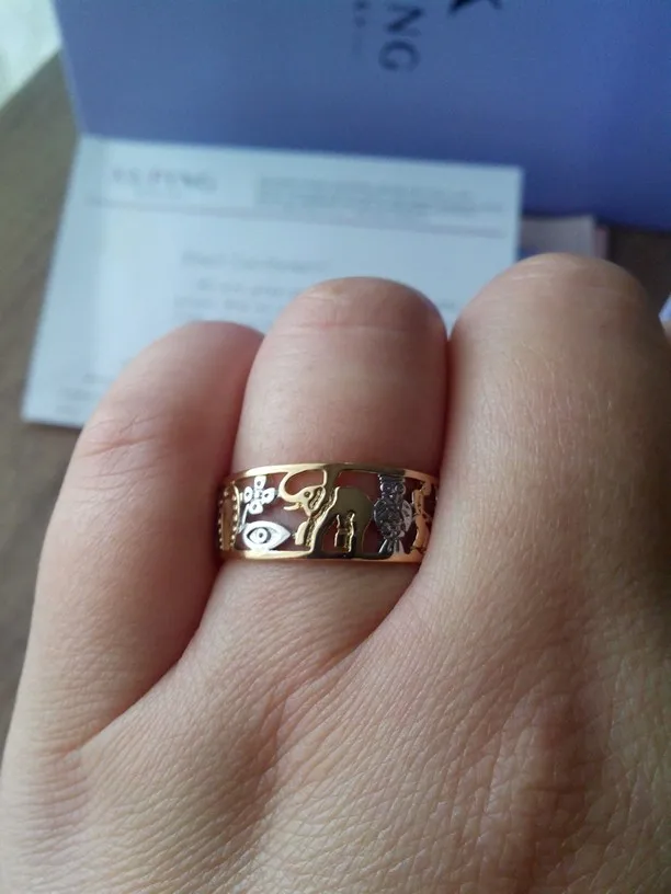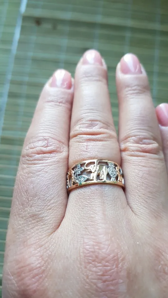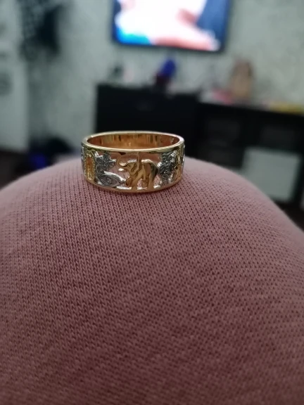 Интересное кольцо-талисман. Металл цвета российского золота. Фигурки на кольце чёткие, легко узнаваемые. Очень похоже на ювелирное изделие. Качество изготовления отличное. Упаковано в фирменную коробочку Xuping. Очень нравится как смотрится на руке. Из-за ширины кольца брала на размер больше, и не ошиблась. Я очень довольна, и носить буду с удовольствием.