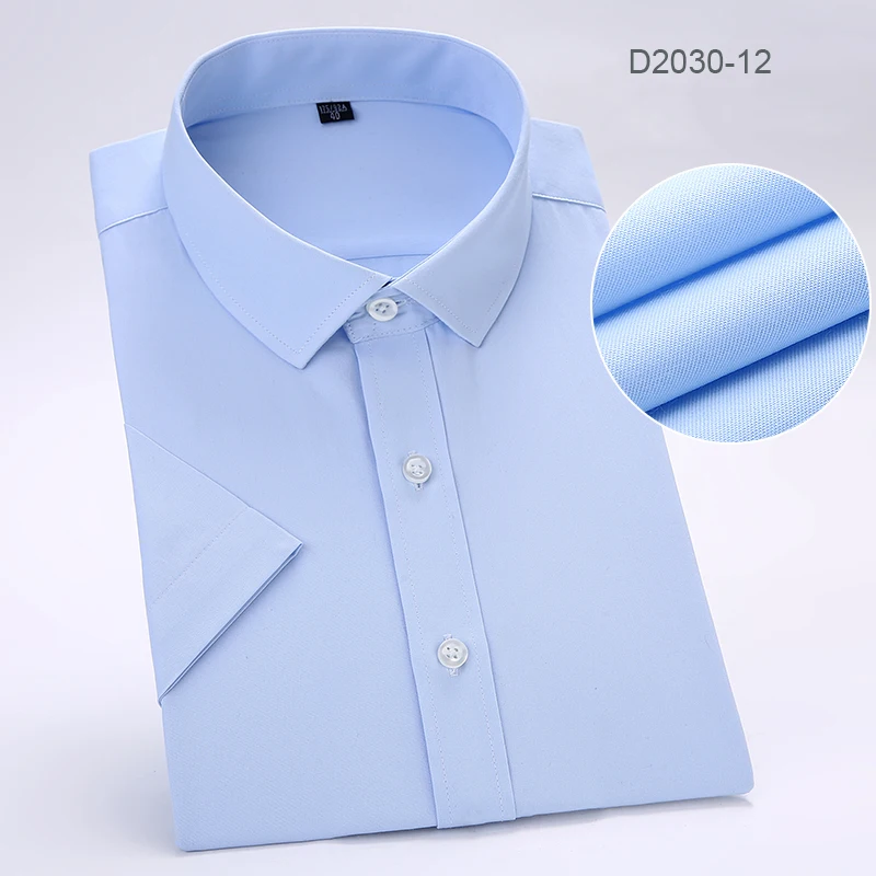 Летняя Однотонная рубашка с коротким рукавом, мужская формальная деловая рубашка, мужская белая приталенная рубашка без переднего кармана, синий светильник