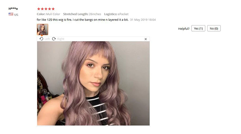 В моей коллекции есть 5 париков и этот самый лучший. У него есть один недостаток - это чёлка. Она странно пришита к парику и оттопыривается. Я отрезала волосы, чтобы чёлка была гуще и выпрямила её. В остальном, нет ни каких претензий. Волосы приятные, мягкие, неплохо расчесываются, очень похожи на натуральные. Большая шапочка парика вмещает и большую голову и густые волосы. Это редкость среди париков, обычно свои волосы не помещаются в парик. Цвет хотя казалось бы лиловый, но выглядит очень натурально и красиво. Если у продавца все парики такого качества, я буду покупать только у него