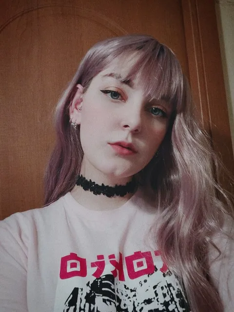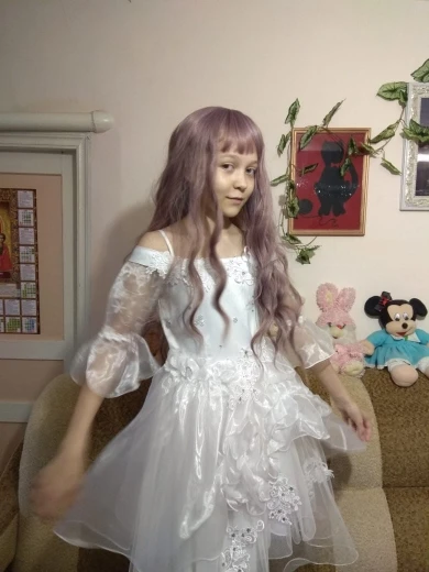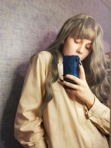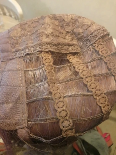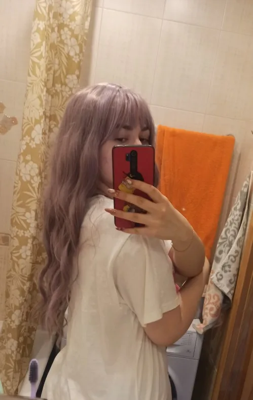 В целом неплохой парик, дошёл за 3 недели. Не очень густой, если чуть поднять прядь, то видна проплешина с шапочкой. Не расчёсывала, но пара волос выпала плюс сами волосы по длине путаются. Цвет сиренево-рыжеватый, как будто на рыжеватые волосы нанесли оттеночный шампунь или не совсем равномерно покрасили краской из баллончика, но мне норм) Парик имеет небольшой блеск, но в целом смотрится естественно. Чёлка короткая, в глаза не лезет, дополнительно подстригать не надо.