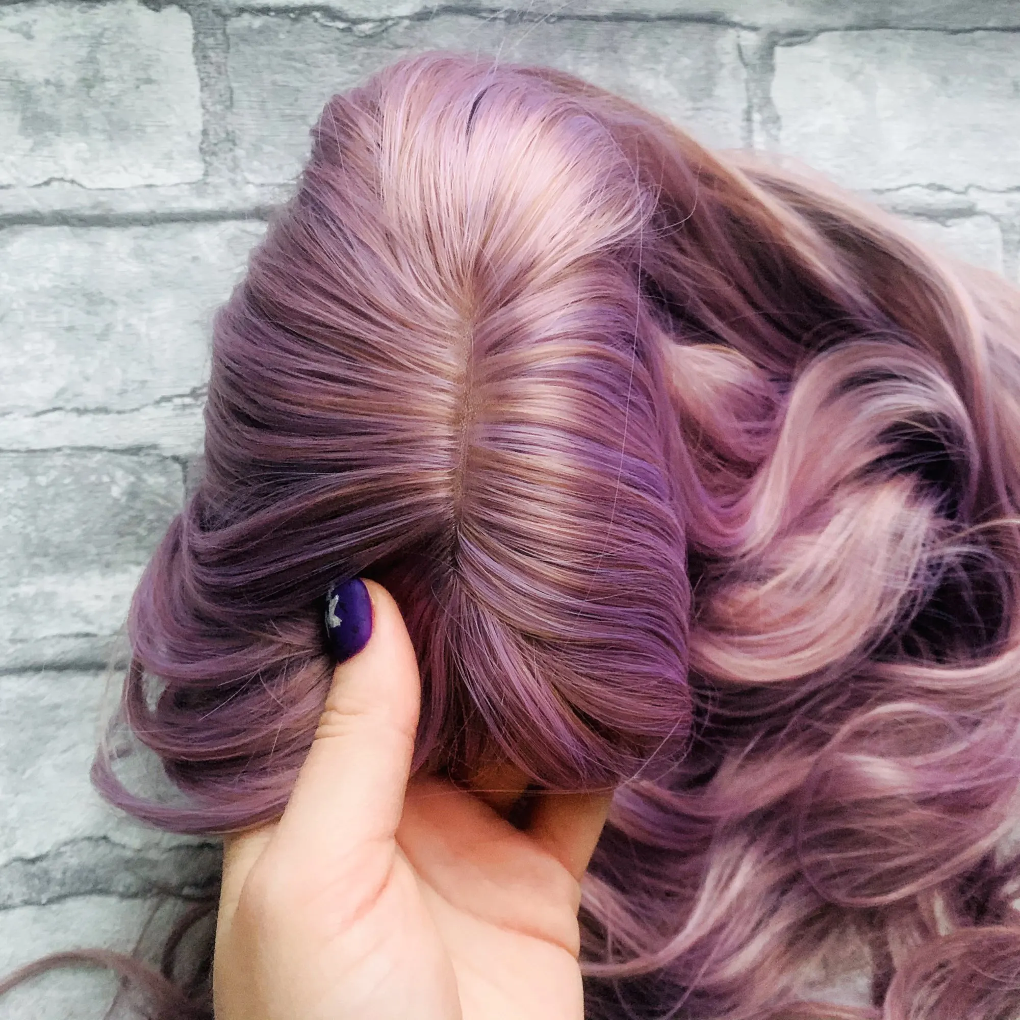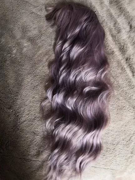 Видно в Instagram ;Ksenia.d.beauty ___ У меня уже есть парик данной модели из этого магазина. На этот раз я выбрала трендовый пудровый сиреневый цвет, который все больше набирает обороты Волосы очень мягкие, шелковистые с естественным блеском, не блестят так сильно как на фото ☝️ Окрашены в два оттенка -золотистый и сиреневый . На детальных фото хорошо видно. Длина волос 66 см. Пробор смотрится в принципе реалистично благодаря челке. Волосы завиты в мягкие кудри. Волосы путаются несильно. Парик не слишком густой. На затылке есть резинка с крючками для регулировки под свой обхват головы. Парик пришёл в мешочке-сетке, так же в комплекте идёт сетка для волос, а в подарок продавец положил повязку на голову и наклейки.