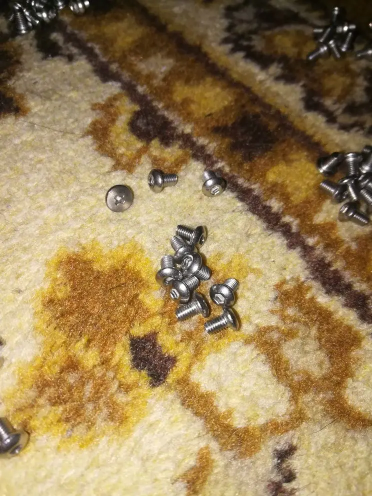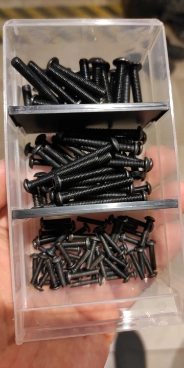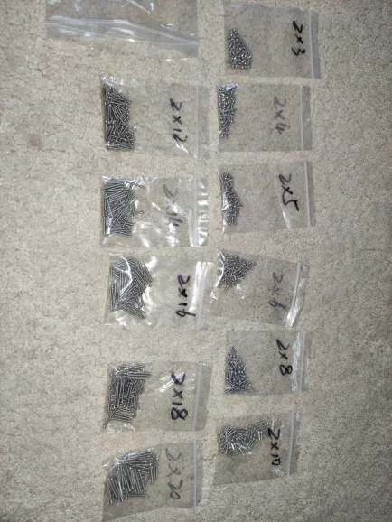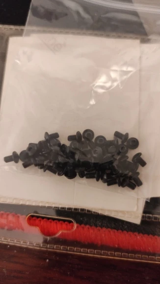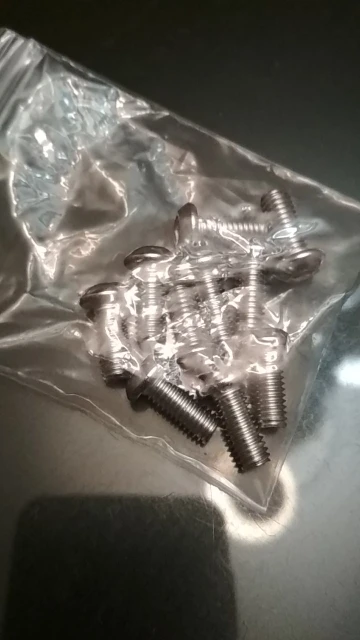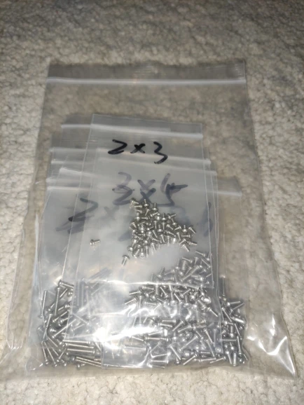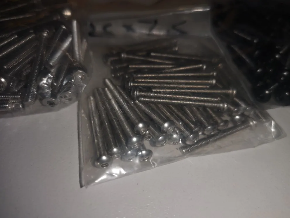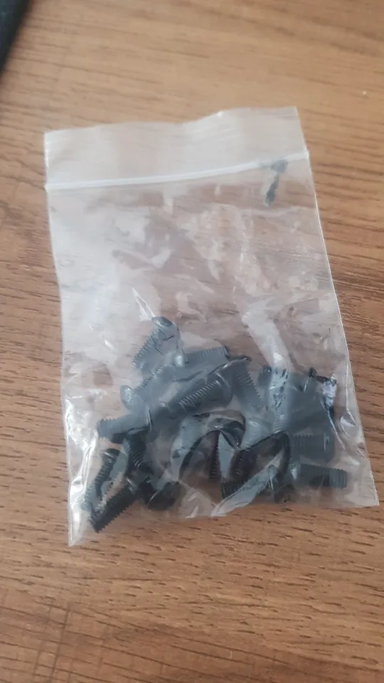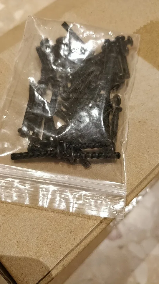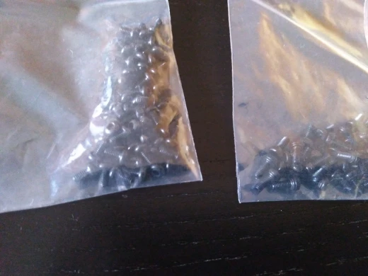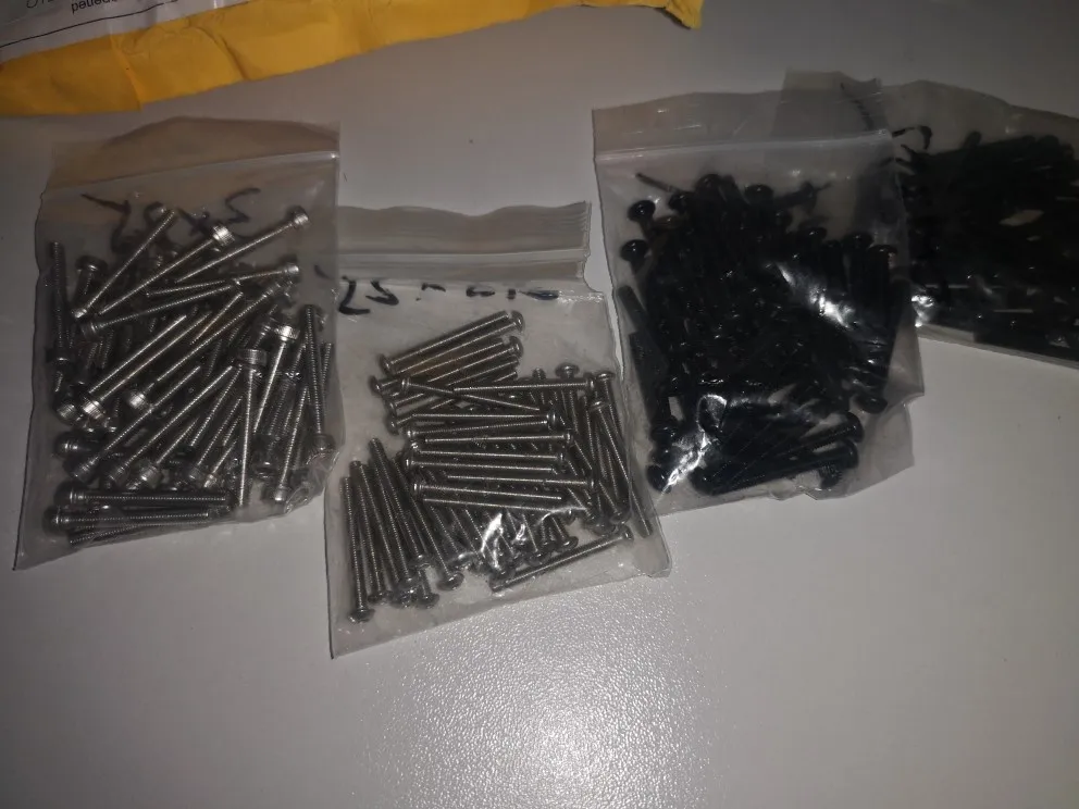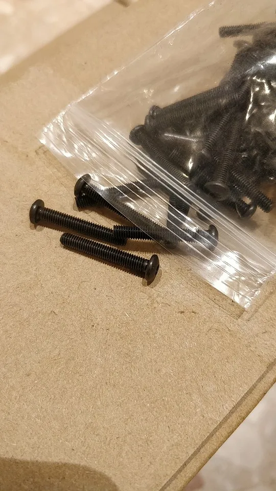 винтики на удивление ровные и без заусенцев, резьба норм, красиво выглядят, в самоделки пойдет, черные -полностью черные, без ржавчины, светлые тоже гуд. продавец не доложил 1 штуку. касёл.