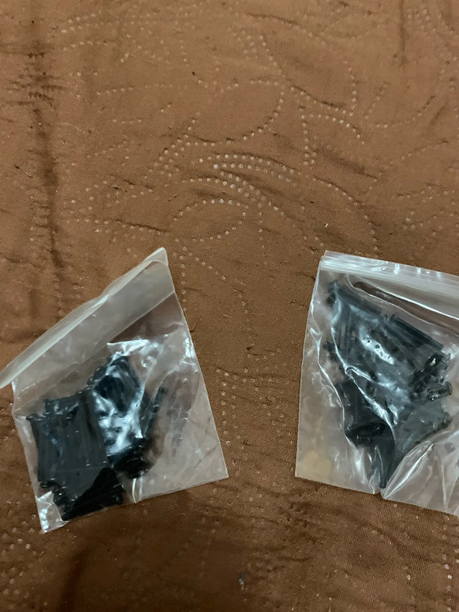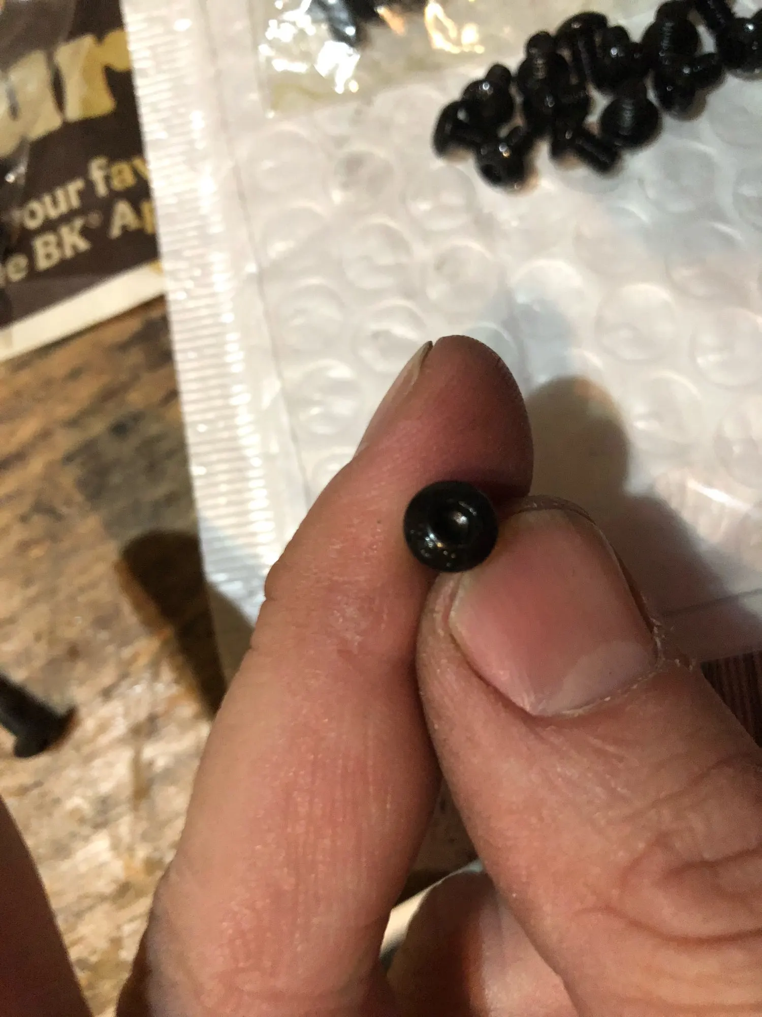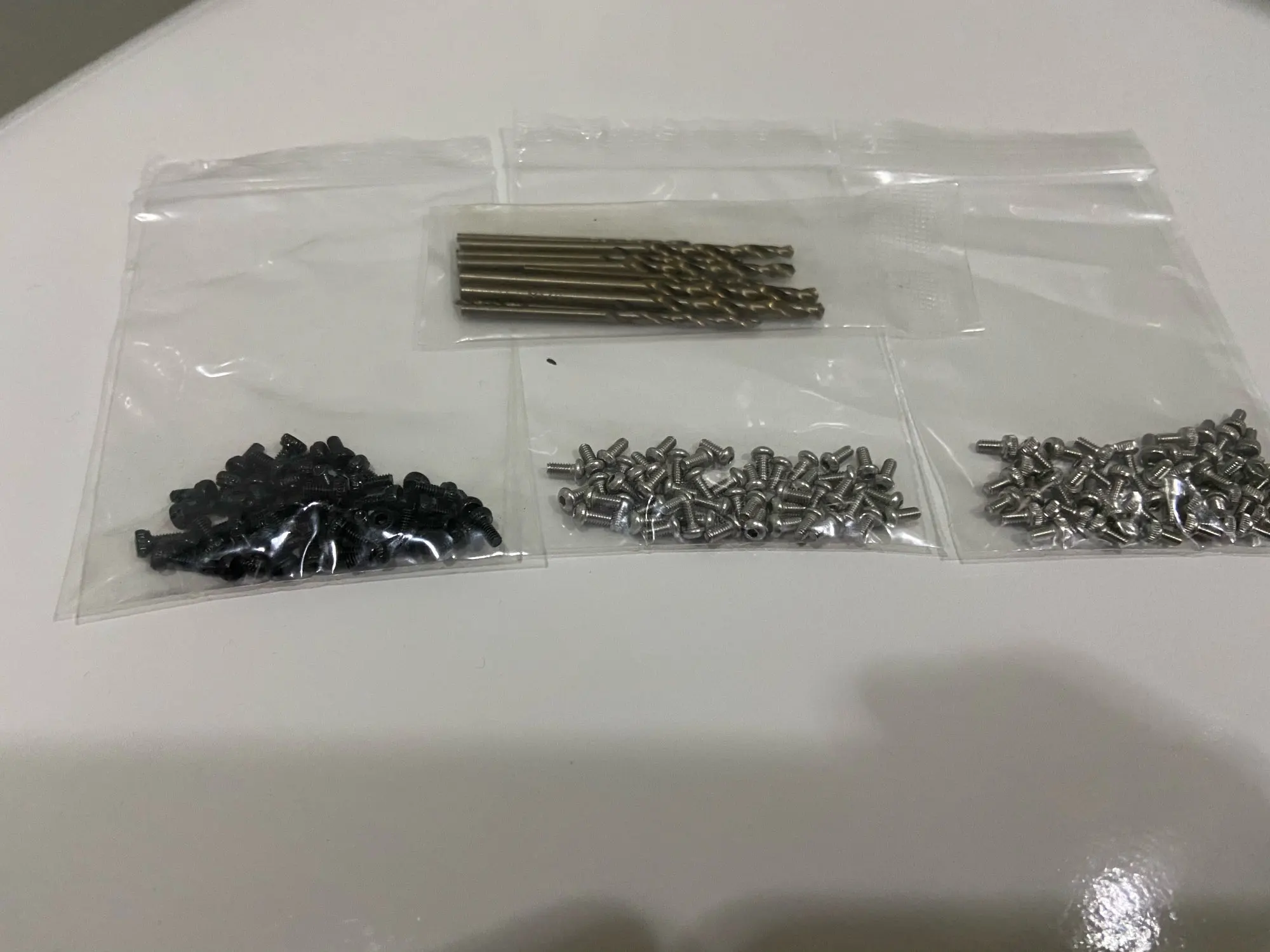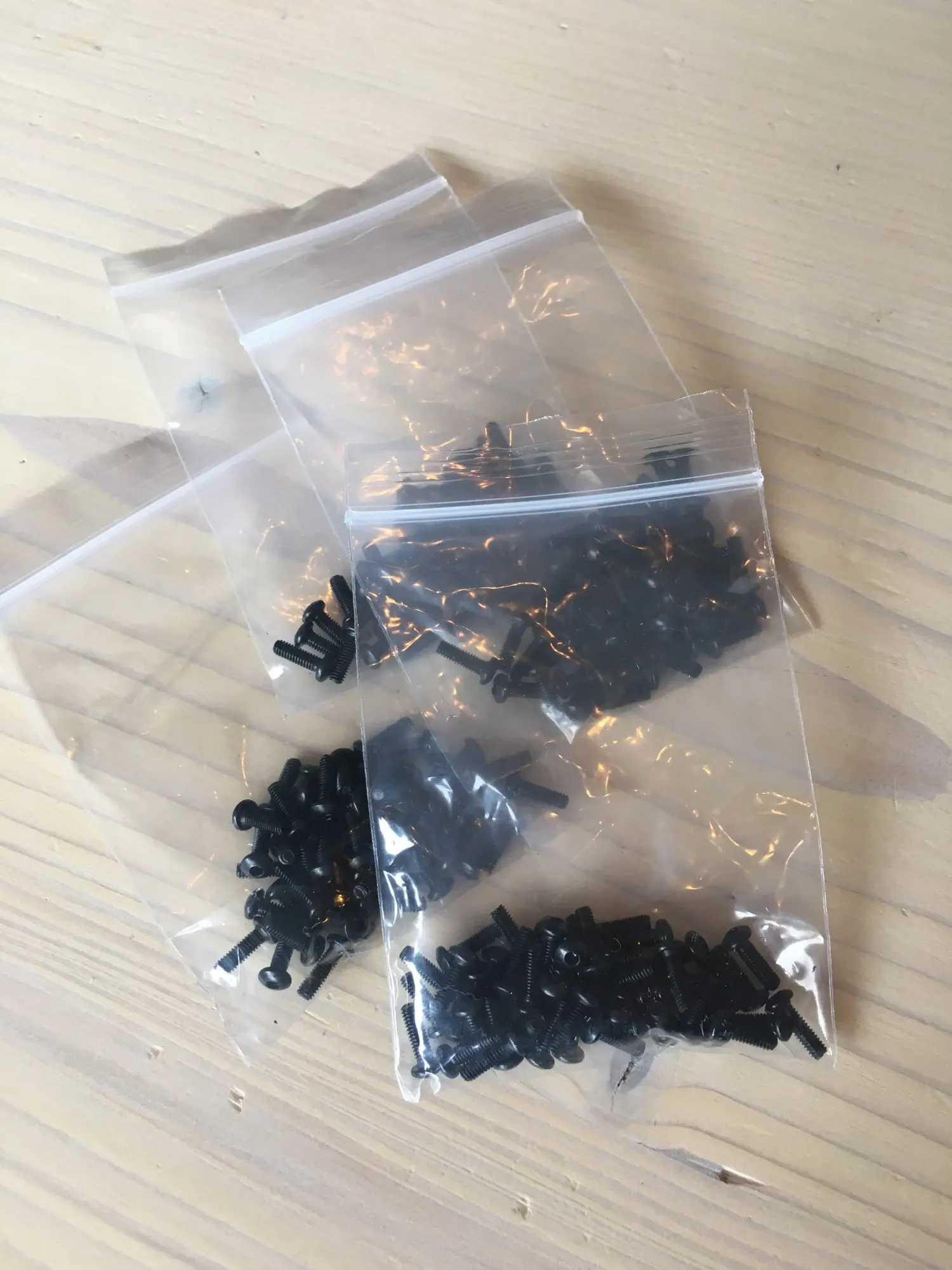 винтики на удивление ровные и без заусенцев, резьба норм, красиво выглядят, в самоделки пойдет, черные -полностью черные, без ржавчины, светлые тоже гуд. продавец не доложил 1 штуку. касёл.