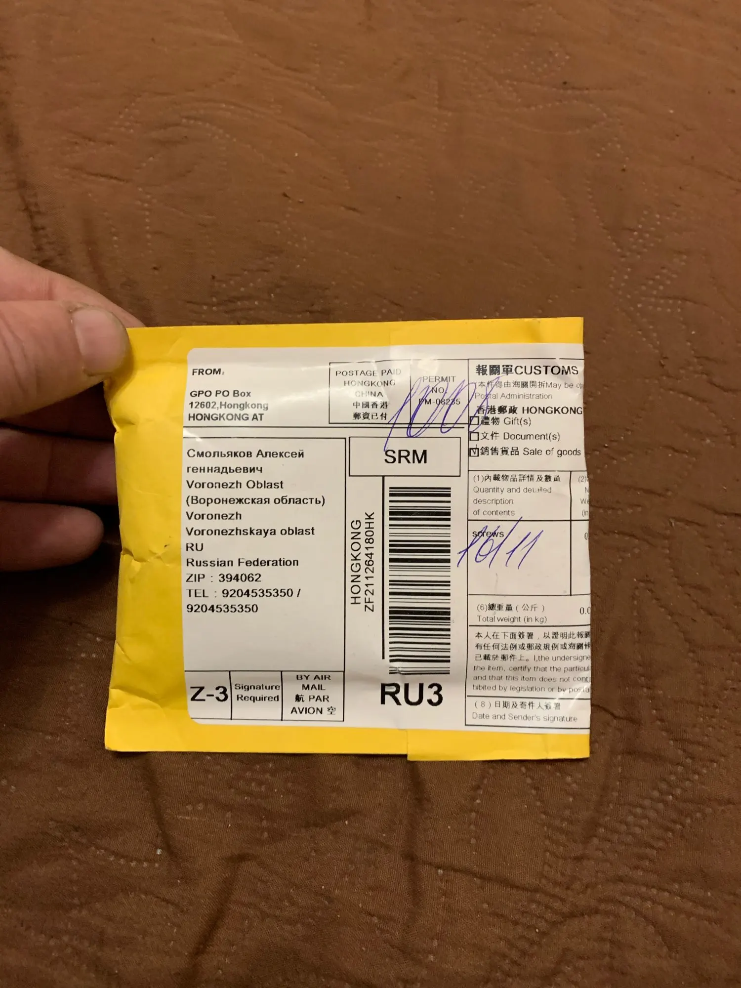 Потерялось в пути.Вернули деньги.