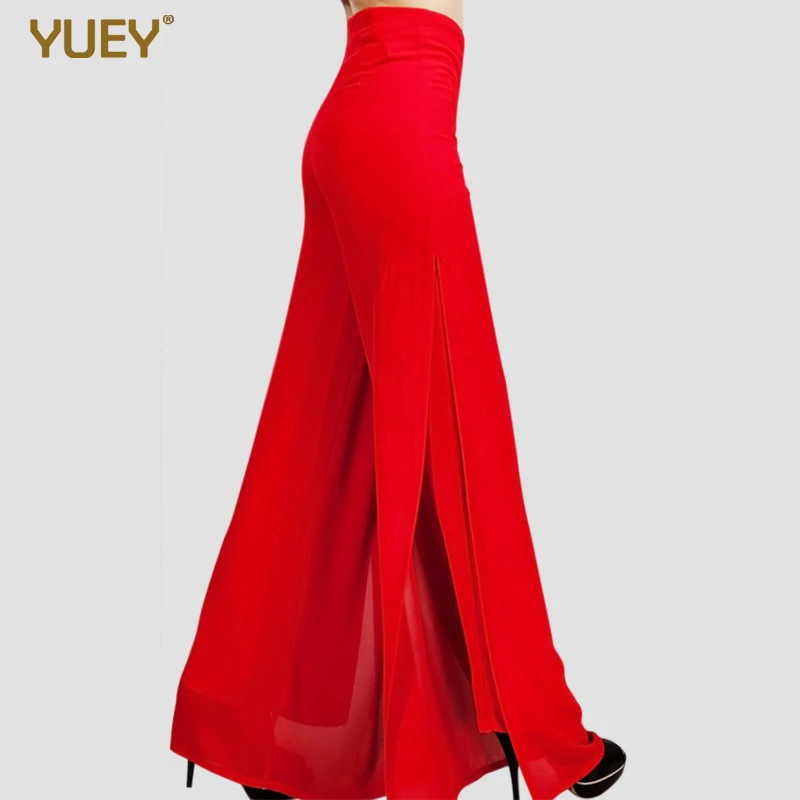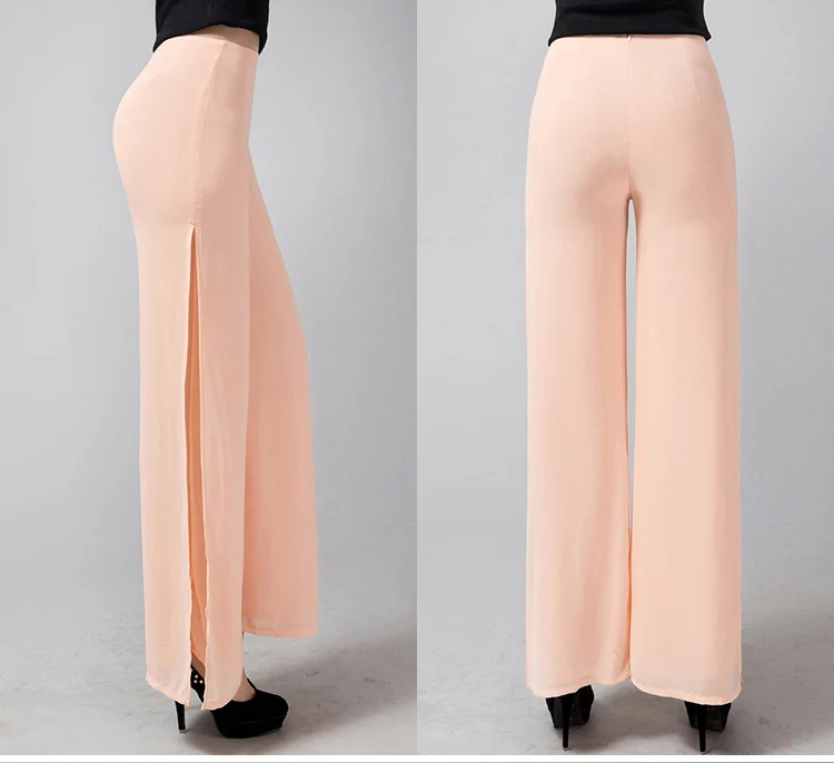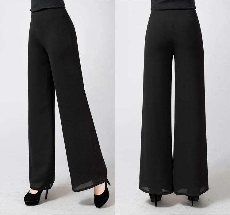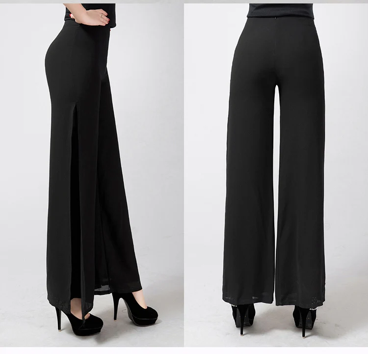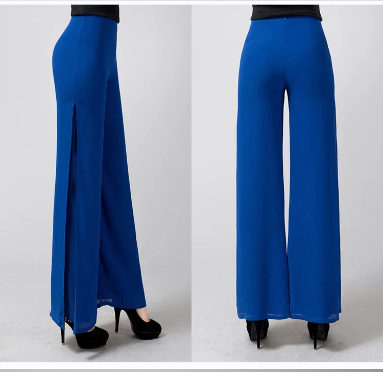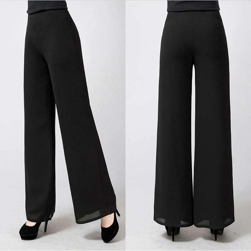 Брюки женские прямые в полную длину, модные шифоновые штаны с широкими штанинами и высокой талией, с Боковым Разрезом, тонкие размера плюс, 6XL, на лето