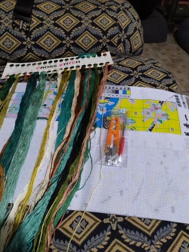 Канва плотная, рисунок нанесен ровно, клеточка в клеточку. Отдельное спасибо продавцу за нитковдеватель, ножницы и распарыватель в комплекте, у других продавцов такого не встречала. И 4 иголки, у других продавцов обычно 2. За небольшую сумму удалось получить шикарный наборчик, с которым приятно работать.