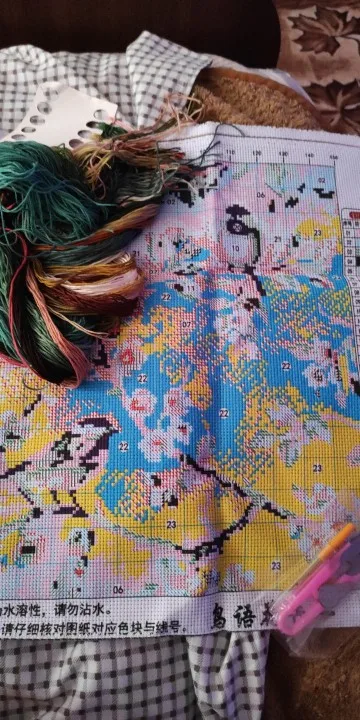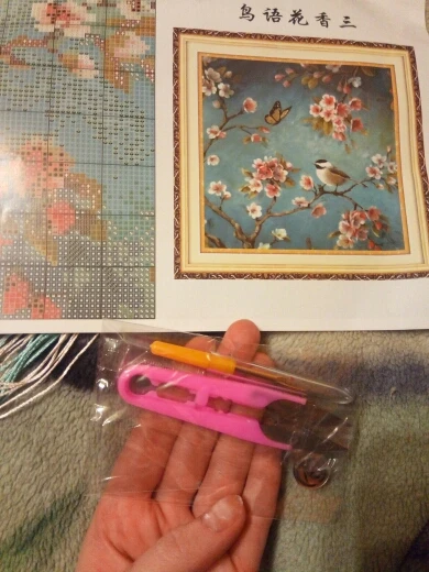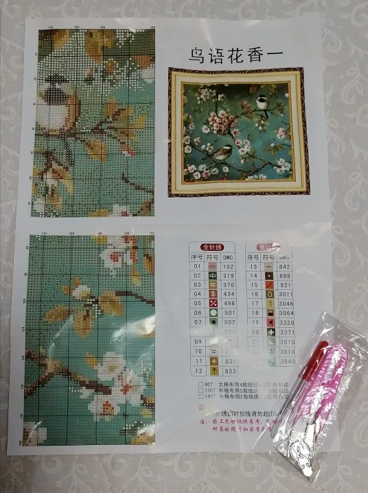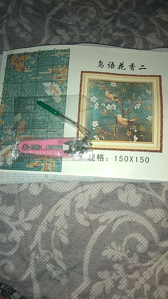Замовила - 01.02, отримала - 10.03 в Україну через Нову пошту у збірній посилці. Товар прийшов швидко у поштовому пакеті, хоча продавець відправив товар тільки після 20.02 через Новий рік у Китаї. Вишивка надрукована чітко; нитки яскраві; також були двоє ножиць, 10 голок, кольорова схема з двох боків надрукована, розпорювач та два нитковдівачі. Купувала за $6.68