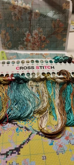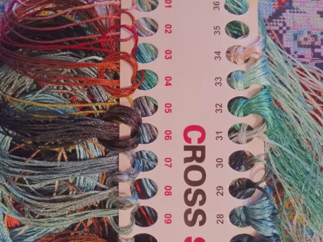 Нитки чуть светлее, чем оригинальные DMC, но не критично
