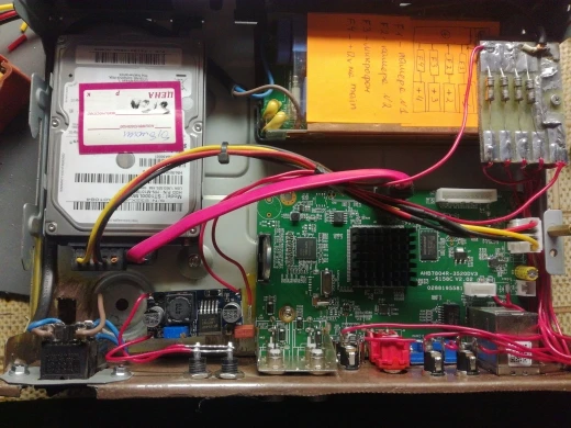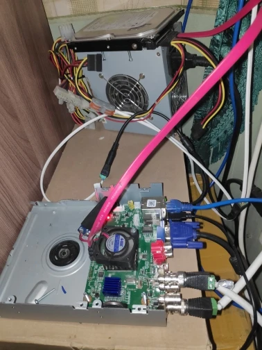 Плата отработала 2 месяца в штатном режиме 24/7 все гуд, ни каких ошибок и глюков. Я доволен! Корпус смонтировал из cd привода,разместив плату и HDD, и накрыв крышкой с отверстиями под вентиляцию. Сразу же поставил вентилятор, запитав напрямую от входного разъема, затем впаял понижающюю плату что бы регулировать обороты, припаивать было уже лень так что сделал так, на фото видно). Мой HDD не захотел запускаться от штатного питания платы, поэтому подключил через БП пк, кстати другой hdd работает с платой нормально. Что касается корпуса: с закрытой крышкой нериальный стоит гул в комнате, поэтому сразу же скинул её и больше не одевал,была проблема с sat кабелем, они у меня старые и бывал HDD переставал записывать, новые уже заказал, но пока в таком расположение все работает отлично без сбоев. У меня есть ютуб канал и паблик вк, постараюсь сделать обзор, ну или отзыв) заказал еще 2 камеры с манрицей imx335. Сейчас стоит imx326 5мп картинка отличная, с задачей справляется на ура.