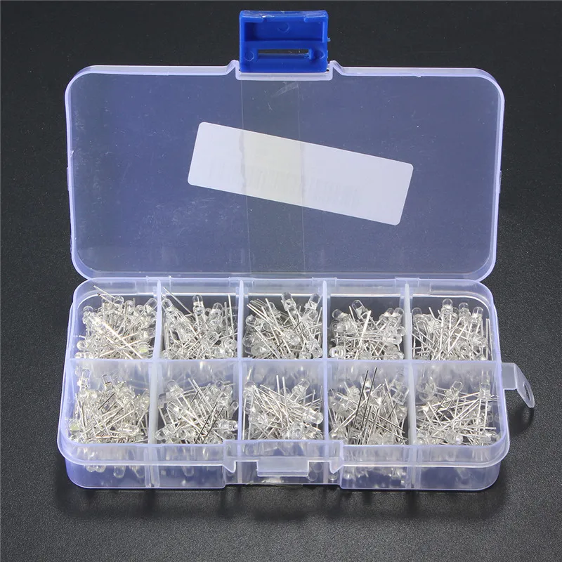 300 шт. светодиодный 3 мм Светодиодные диоды в ассортименте, круглые прозрачные ультраярсветодиодный светодиодные светоизлучающие диоды, лампа, 5 цветов, белый, желтый, красный, синий, зеленый