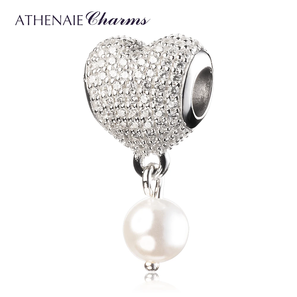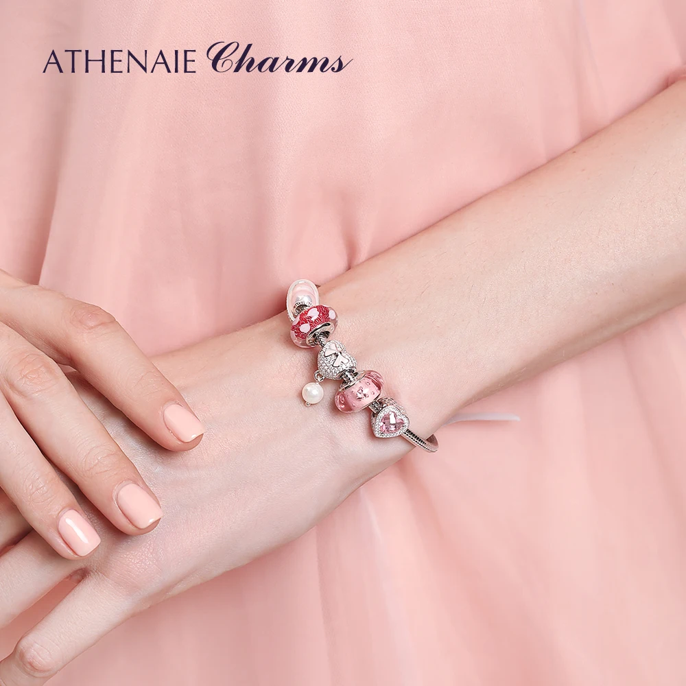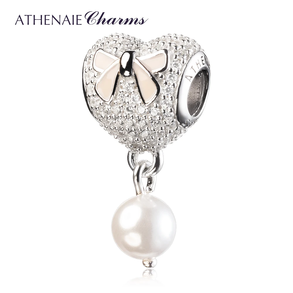 ATHENAIE 925 серебряный розовый бант вставка CZ сердце мягкая Розовая эмаль с ракушками кулон из бисера капельки бусины подвески