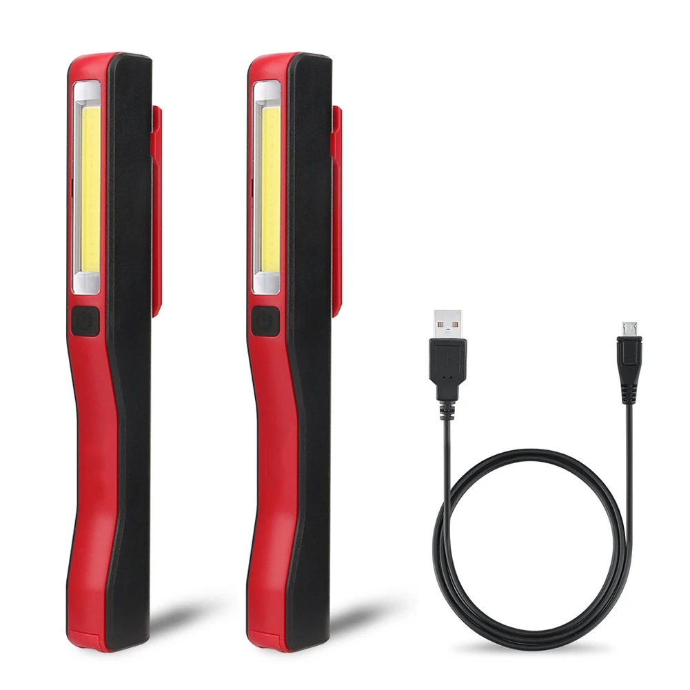 2 шт. COB светодиодный фонарик, магнисветильник фонарь, портативный фонарь, USB Перезаряжаемый фонарик для обслуживания, Рабочий фонарь, s-образный зажим, карманная лампа