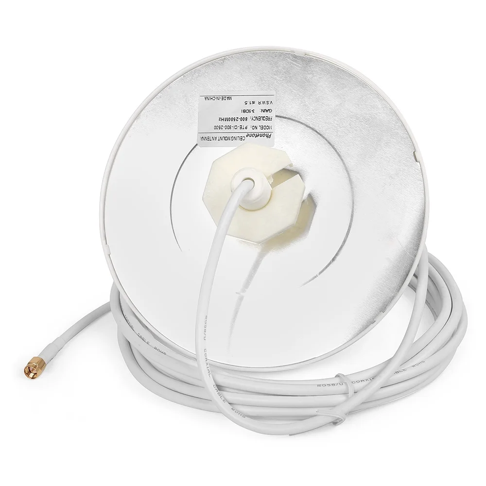 Внутренняя всенаправленная антенна 800 ~ 2500 МГц с белым кабелем 5 м с разъемом SMA для подключения мобильный телефон усилитель сигнала