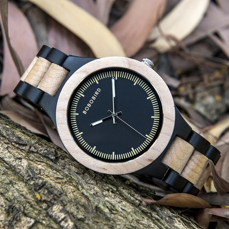 Часы наручные BOBO BIRD мужские деревянные, брендовые Роскошные с японским механизмом и деревянной подарочной коробкой