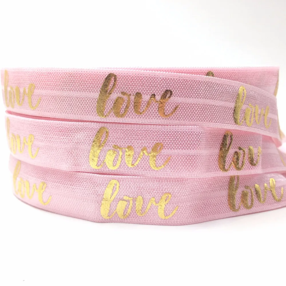 Новейшая Золотая фольга с принтом «любовь», эластичная резинка для волос 5/8 "для девочек, розовая фольга, лента, 10 ярдов для обруч для волос, браслет, сделай сам, одежда для головы