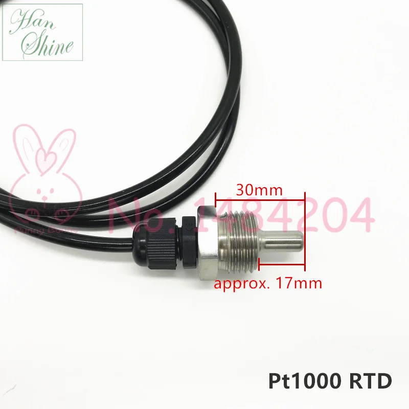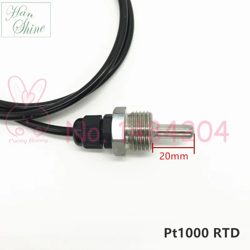 Датчик температуры PT1000, корпус SUS304, Платиновое сопротивление, BSP G12 дюйма, диаметр зонда = 7 мм, L = 20, 50, 100, 150 мм, AWG24 * 3C, провод 1,5 м