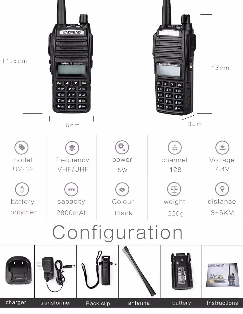 Портативная рация BaoFeng UV 82, UV-82 МГц