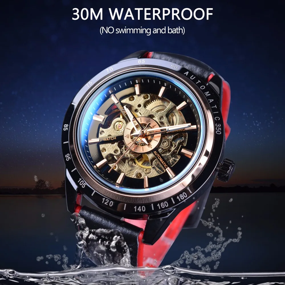 Forsining 2017 модные дизайнерские прозрачные Спортивные Мужские автоматические часы с кожаным ремешком от известного бренда роскошные механические часы