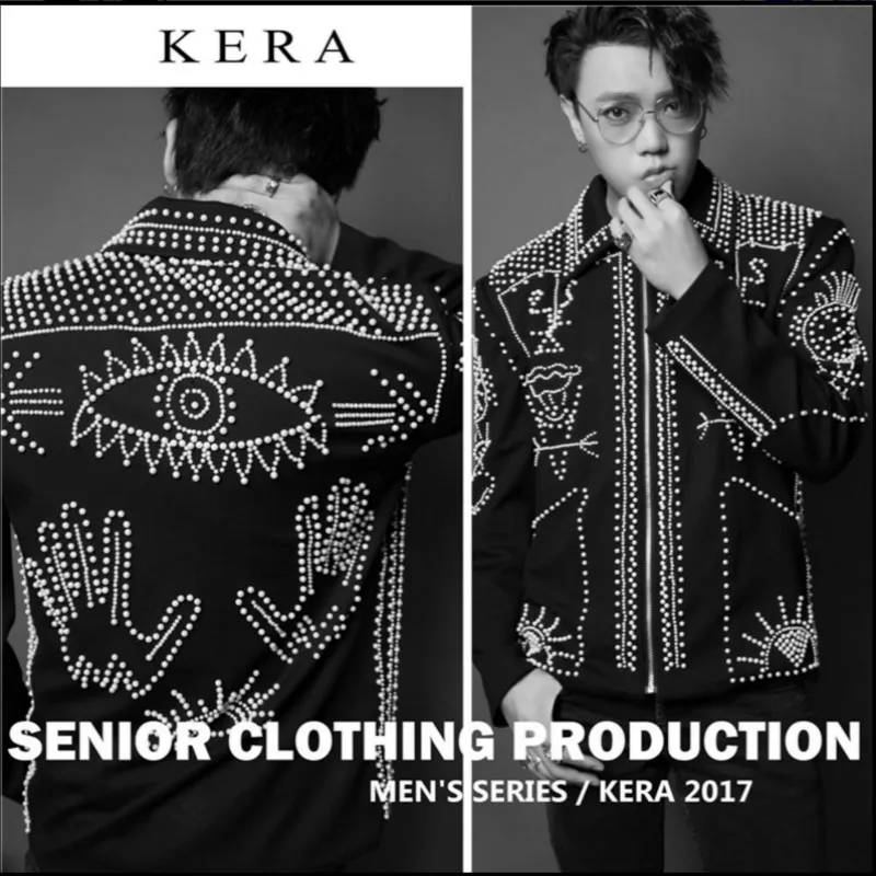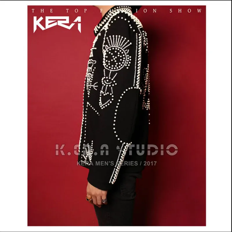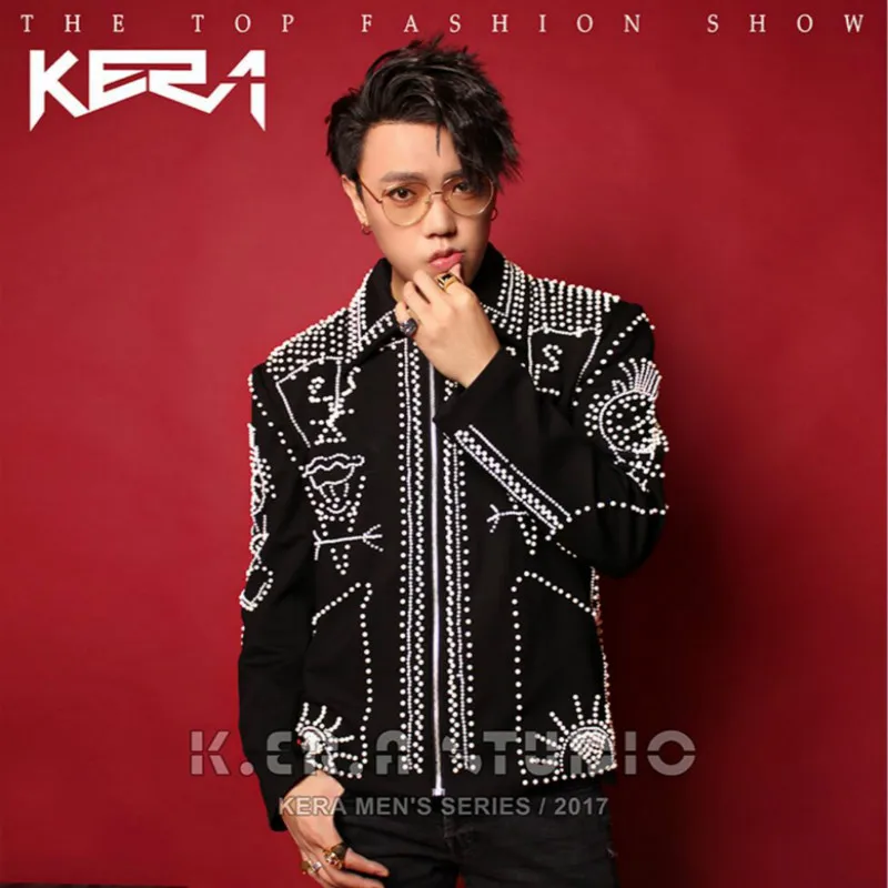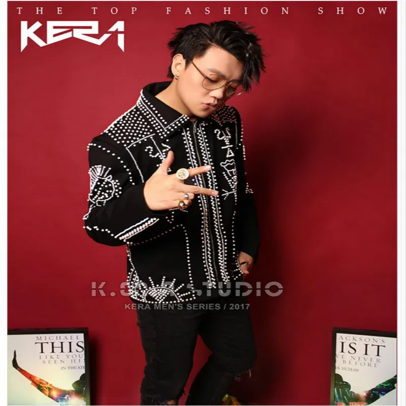 2021, новинка, для ночного клуба, черные модельные пальто тяжелой промышленности жемчужина заклепки куртка мужская певица сценические костюмы размера плюс, одежда