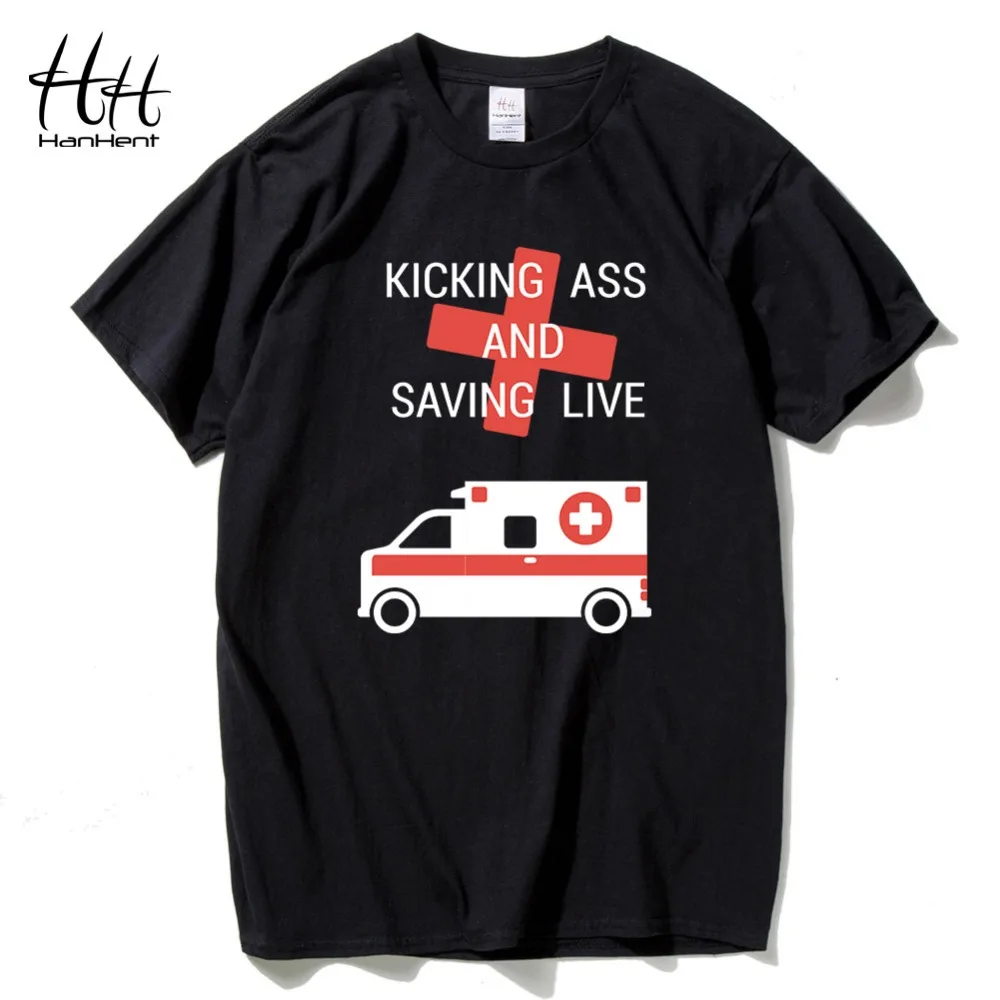 Футболки HanHent 2018 с принтом скорой помощи, мужские свободные хлопковые футболки с коротким рукавом, Новые забавные повседневные футболки, мужская Черная футболка